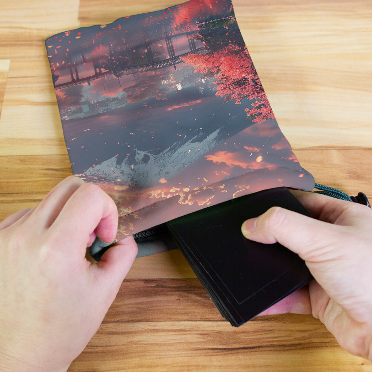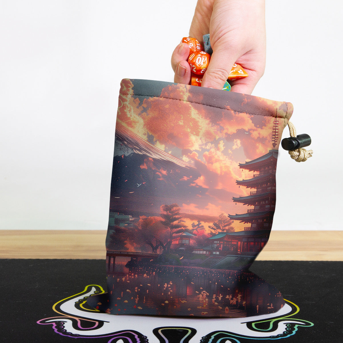 Always gaming on the go? Carry everything you need and more using our specially crafted dice bag. But this bag is designed to hold more than just dice. We make it so you can carry other essential accessories and gear with your dice, including deck boxes, life counters, extra sleeves, and pens. Quality is just as important as quantity, which is why our dice bags are crafted using premium material as well. Featuring a soft inner lining and microfiber on the inside and vibrant pre-designed artwork on the outside, our dice bag has an amazing look and feel to it!