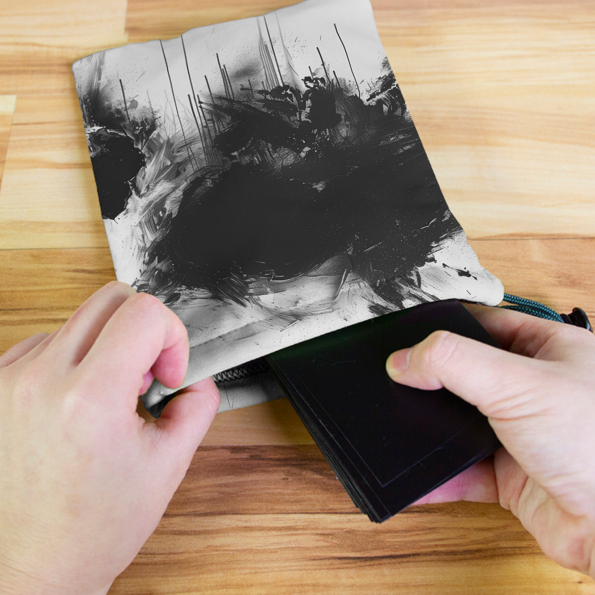 Always gaming on the go? Carry everything you need and more using our specially crafted dice bag. But this bag is designed to hold more than just dice. We make it so you can carry other essential accessories and gear with your dice, including deck boxes, life counters, extra sleeves, and pens. Quality is just as important as quantity, which is why our dice bags are crafted using premium material as well. Featuring a soft inner lining and microfiber on the inside and vibrant pre-designed artwork on the outside, our dice bag has an amazing look and feel to it!