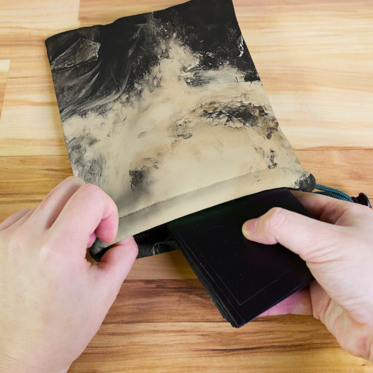 Always gaming on the go? Carry everything you need and more using our specially crafted dice bag. But this bag is designed to hold more than just dice. We make it so you can carry other essential accessories and gear with your dice, including deck boxes, life counters, extra sleeves, and pens. Quality is just as important as quantity, which is why our dice bags are crafted using premium material as well. Featuring a soft inner lining and microfiber on the inside and vibrant pre-designed artwork on the outside, our dice bag has an amazing look and feel to it!