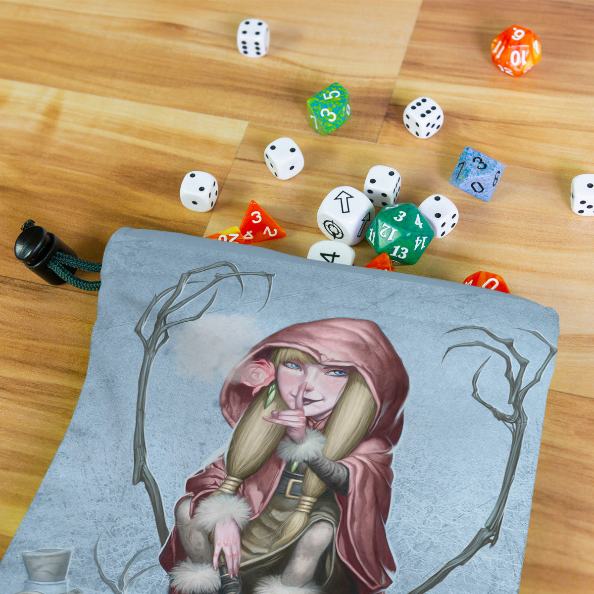 Always gaming on the go? Carry everything you need and more using our specially crafted dice bag. But this bag is designed to hold more than just dice. We make it so you can carry other essential accessories and gear with your dice, including deck boxes, life counters, extra sleeves, and pens. Quality is just as important as quantity, which is why our dice bags are crafted using premium material as well. Featuring a soft inner lining and microfiber on the inside and vibrant pre-designed artwork on the outside, our dice bag has an amazing look and feel to it!