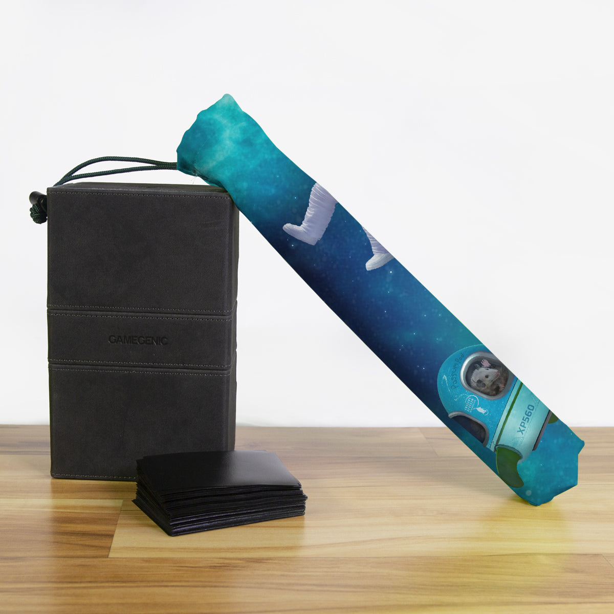 Keep your playmat in pristine condition wherever you go with one of our handcrafted playmat bags. This playmat bag is specifically designed to protect your playmat and can hold two standard sized mats at the same time (in case you need a backup or your friend forgets theirs). Each bag is made in-house and features a water-resistant coating along with a drawstring and carabiner clip for secure carrying. So you can take your game anywhere and in any weather.