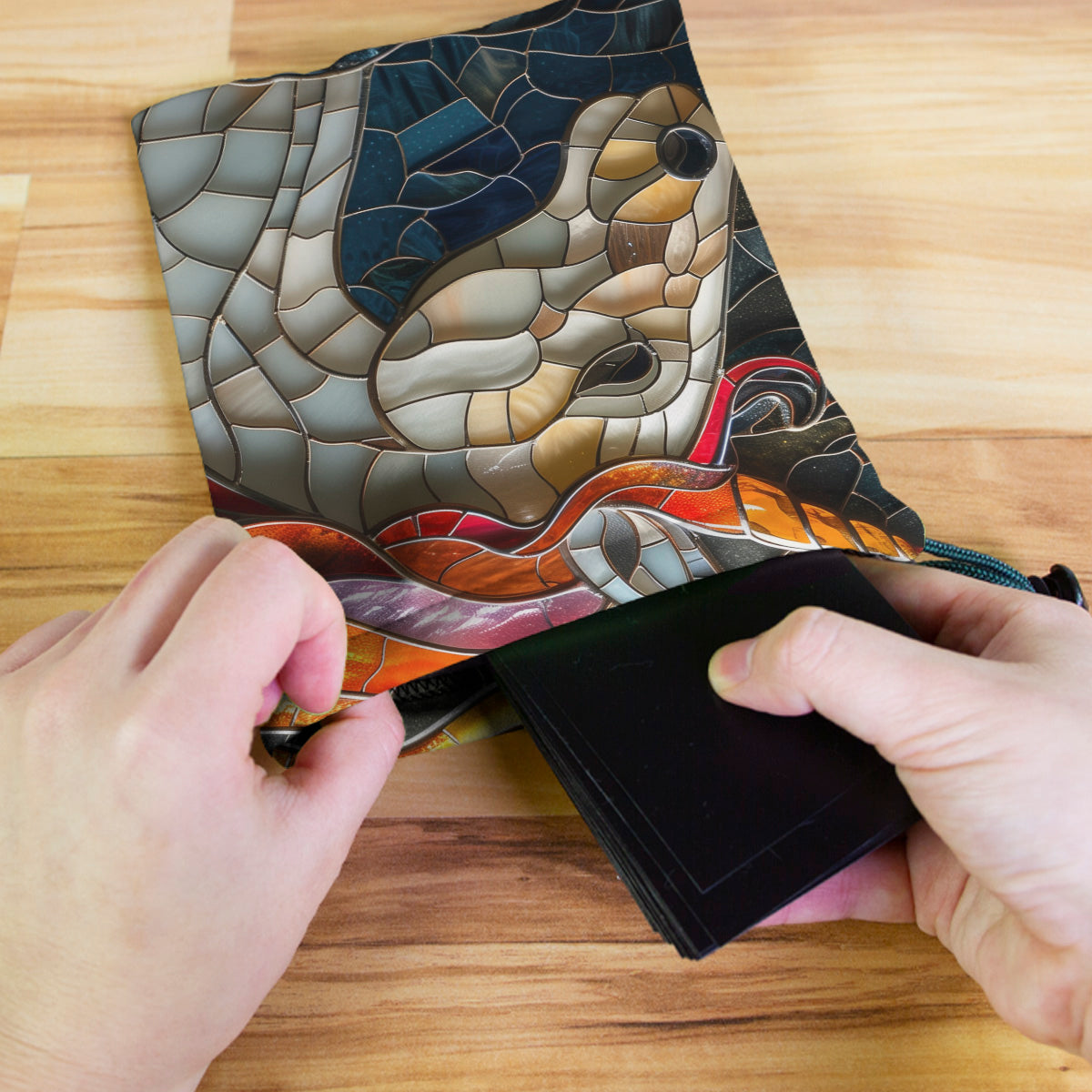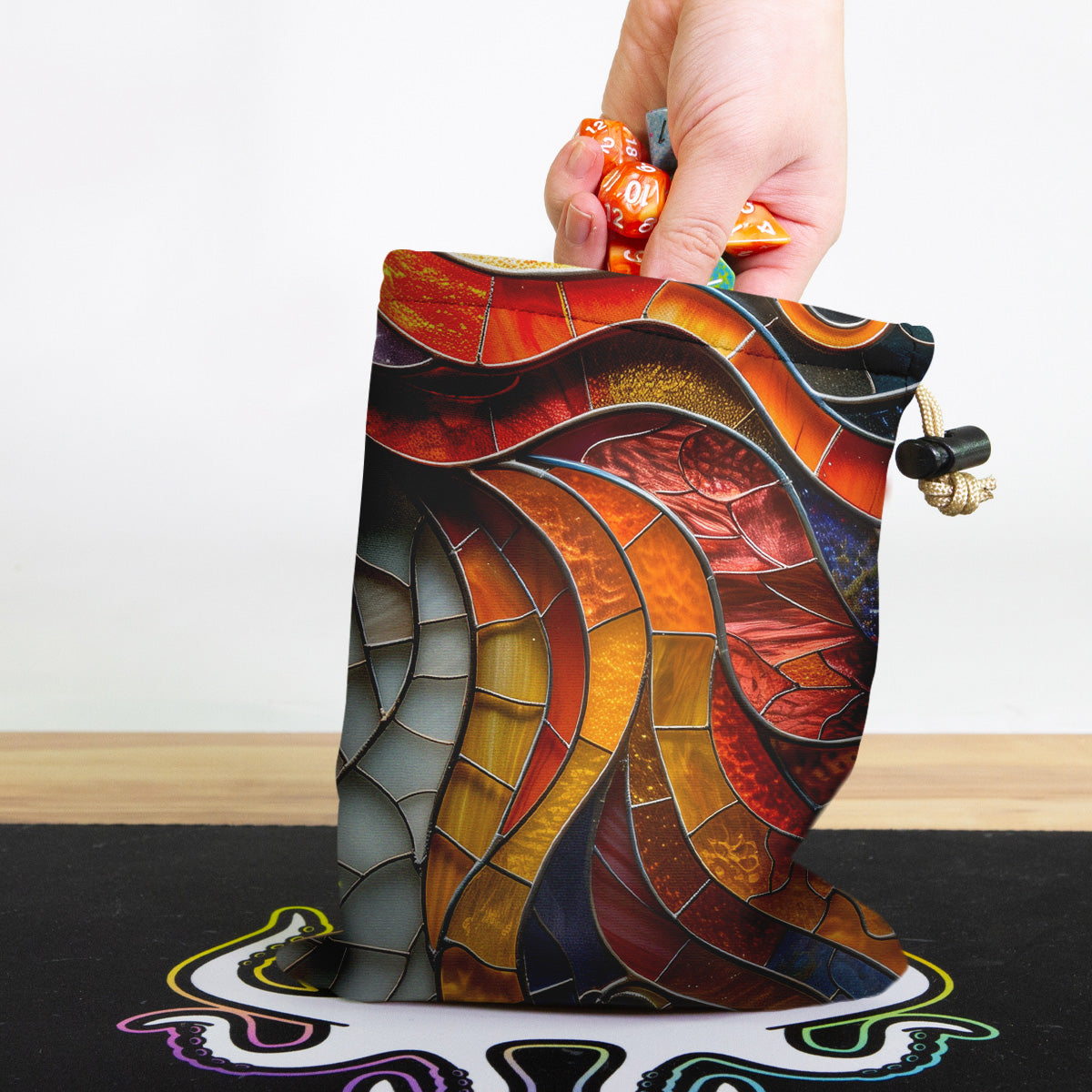 Always gaming on the go? Carry everything you need and more using our specially crafted dice bag. But this bag is designed to hold more than just dice. We make it so you can carry other essential accessories and gear with your dice, including deck boxes, life counters, extra sleeves, and pens. Quality is just as important as quantity, which is why our dice bags are crafted using premium material as well. Featuring a soft inner lining and microfiber on the inside and vibrant pre-designed artwork on the outside, our dice bag has an amazing look and feel to it!