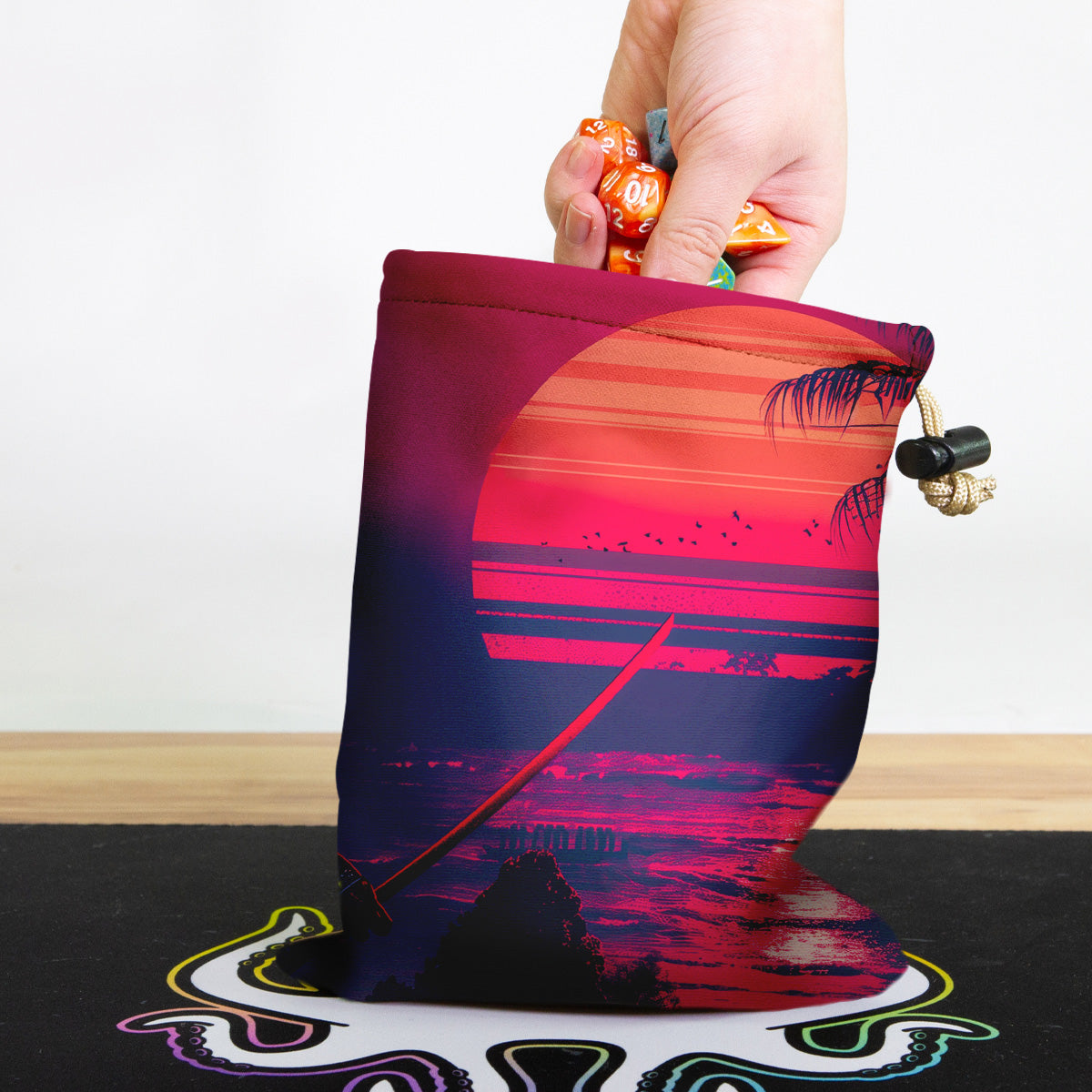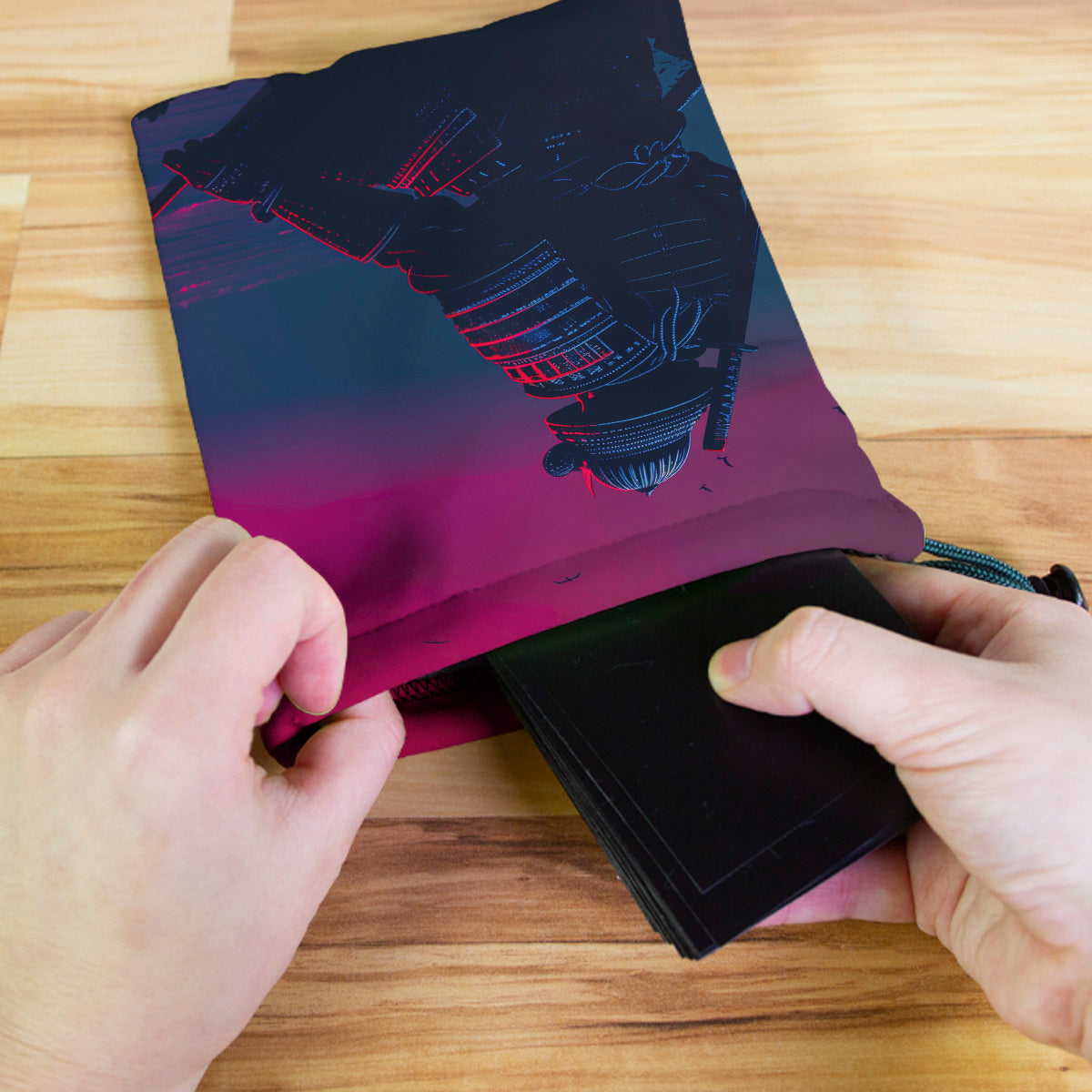 Always gaming on the go? Carry everything you need and more using our specially crafted dice bag. But this bag is designed to hold more than just dice. We make it so you can carry other essential accessories and gear with your dice, including deck boxes, life counters, extra sleeves, and pens. Quality is just as important as quantity, which is why our dice bags are crafted using premium material as well. Featuring a soft inner lining and microfiber on the inside and vibrant pre-designed artwork on the outside, our dice bag has an amazing look and feel to it!