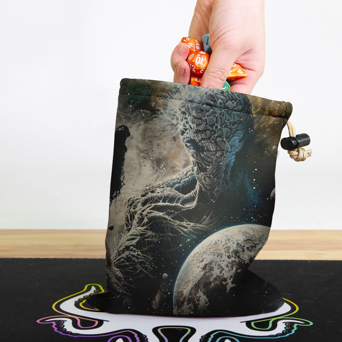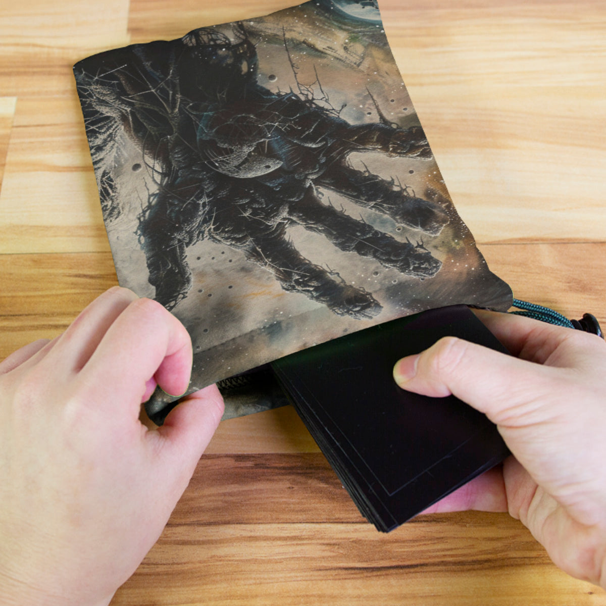 Always gaming on the go? Carry everything you need and more using our specially crafted dice bag. But this bag is designed to hold more than just dice. We make it so you can carry other essential accessories and gear with your dice, including deck boxes, life counters, extra sleeves, and pens. Quality is just as important as quantity, which is why our dice bags are crafted using premium material as well. Featuring a soft inner lining and microfiber on the inside and vibrant pre-designed artwork on the outside, our dice bag has an amazing look and feel to it!