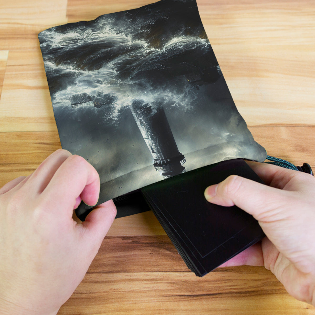 Always gaming on the go? Carry everything you need and more using our specially crafted dice bag. But this bag is designed to hold more than just dice. We make it so you can carry other essential accessories and gear with your dice, including deck boxes, life counters, extra sleeves, and pens. Quality is just as important as quantity, which is why our dice bags are crafted using premium material as well. Featuring a soft inner lining and microfiber on the inside and vibrant pre-designed artwork on the outside, our dice bag has an amazing look and feel to it!