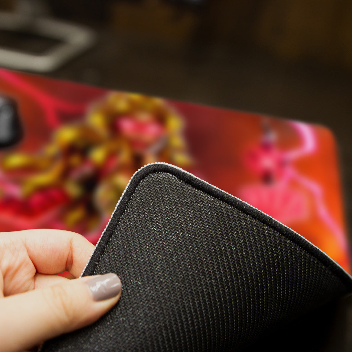 Need a new mousepad that features quality craftsmanship and creativity? Then you’ve definitely come to the right place. Our mousepads are made in-house with premium materials and unique artwork that give your battlestation the supreme look and feel that it deserves. The top is made from sleek polyester, which enables faster, more precise mouse movements. This enhanced speed and precision come in handy whether you’re working or gaming. On the bottom, there’s a strong anti-slip rubber backing that holds a nice, tight grip on your desk while you’re doing your thing. The action and traction that this pad provides give you a better overall experience in completing daily tasks, deadlines, and missions of all kinds. And because we’ve added more sizing options to it, you no longer have to worry about running out of room at the worst moments either. See those sizes and their approximate measurements in the details below. We think you’ll be impressed...if you aren’t already!