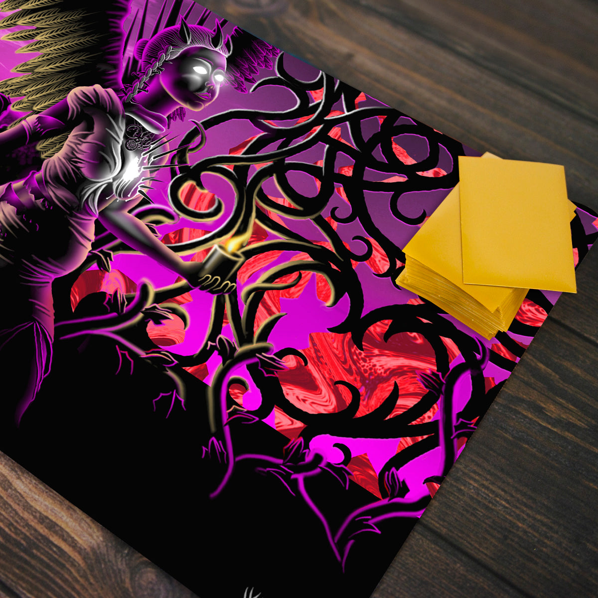 All Inked playmats are specially designed for you to play your favorite card games with style and finesse. Made with a smooth cloth top and rubber bottom, our mats allow you to pick up and move your cards with ease. That means no more sliding cards off the edges of tables or struggling to flip cards over at the most pivotal moment of battle. And with different sizing options available - Standard and Oversized - our playmats are made to fit every style of play. So, if you’re the type of player who requires a little extra elbow room, there’s a mat for that! No matter the size, these mats are ideal for keeping your precious cards and sleeves in good condition as well. When it comes to crafting the perfect playmat, quality and care is the name of the game. With a playmat like this, you’ll be hard-pressed to find anything else that comes close!