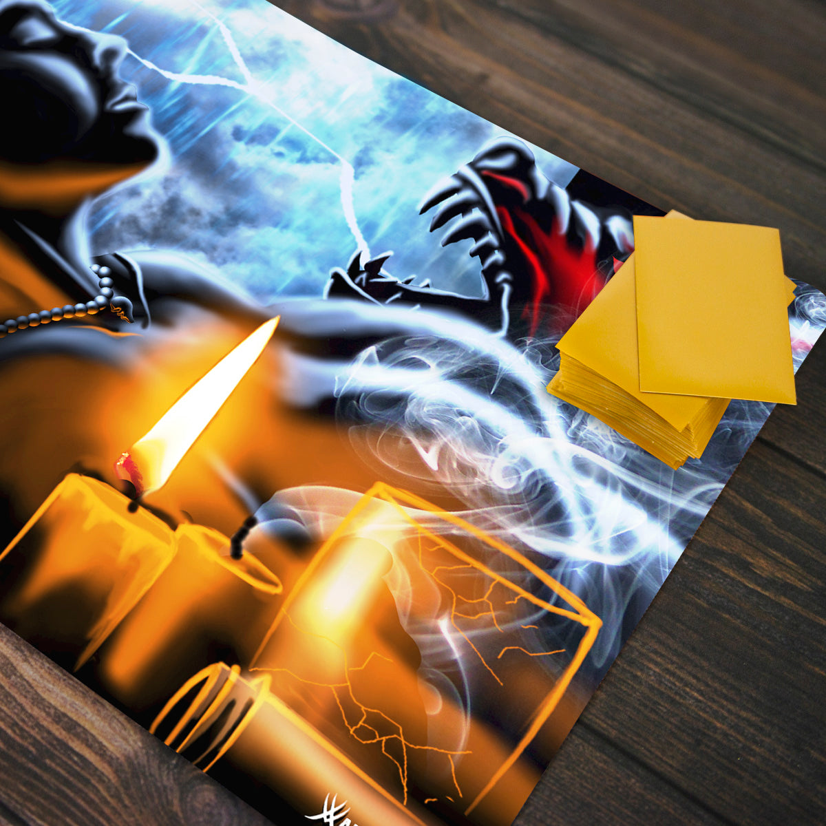 All Inked playmats are specially designed for you to play your favorite card games with style and finesse. Made with a smooth cloth top and rubber bottom, our mats allow you to pick up and move your cards with ease. That means no more sliding cards off the edges of tables or struggling to flip cards over at the most pivotal moment of battle. And with different sizing options available - Standard and Oversized - our playmats are made to fit every style of play. So, if you’re the type of player who requires a little extra elbow room, there’s a mat for that! No matter the size, these mats are ideal for keeping your precious cards and sleeves in good condition as well. When it comes to crafting the perfect playmat, quality and care is the name of the game. With a playmat like this, you’ll be hard-pressed to find anything else that comes close!
