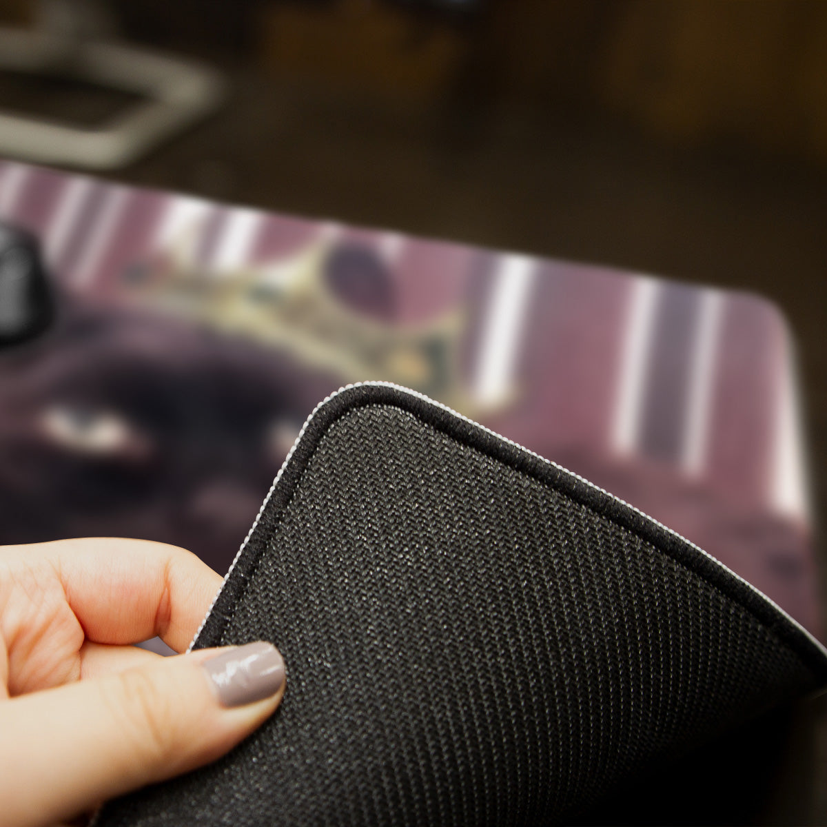 Need a new mousepad that features quality craftsmanship and creativity? Then you’ve definitely come to the right place. Our mousepads are made in-house with premium materials and unique artwork that give your battlestation the supreme look and feel that it deserves. The top is made from sleek polyester, which enables faster, more precise mouse movements. This enhanced speed and precision come in handy whether you’re working or gaming. On the bottom, there’s a strong anti-slip rubber backing that holds a nice, tight grip on your desk while you’re doing your thing. The action and traction this pad provides give you a better overall experience in completing daily tasks, deadlines, and missions of all kinds. And because we’ve added more sizing options to it, you no longer have to worry about running out of room at the worst moments either. The sizes are Classic, Large, and XL. The Classic mousepad has unstitched edges. However, the Large mousepad does include stitched edging, while the XL mousepad has both a stitched or unstitched edging option available. You can see the approximate measurements of all those sizes in the details below. We think you’ll be impressed…if you aren’t already!