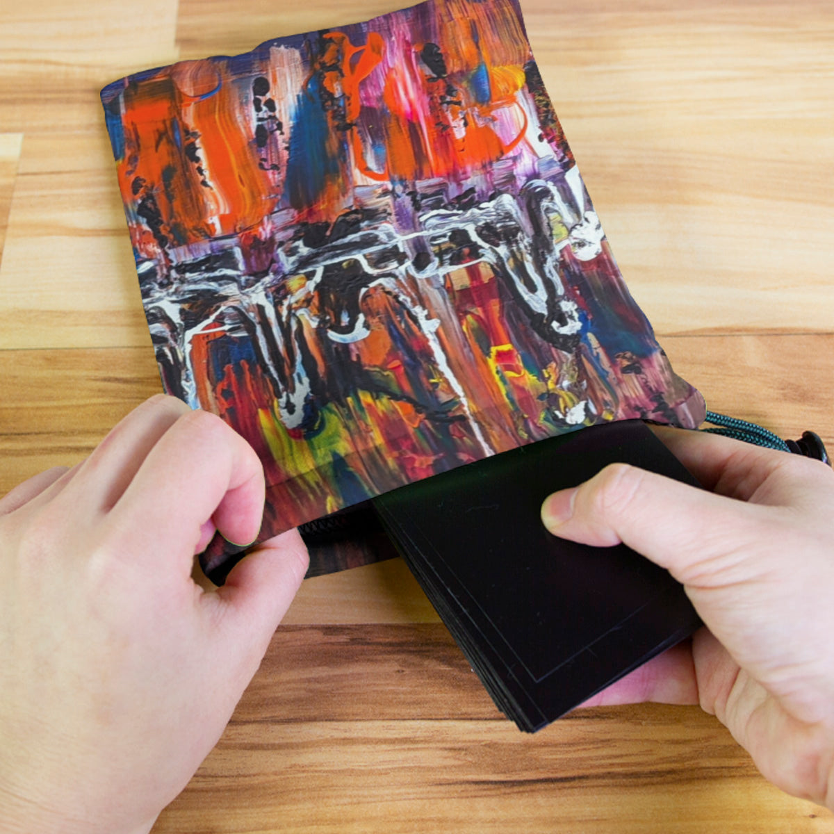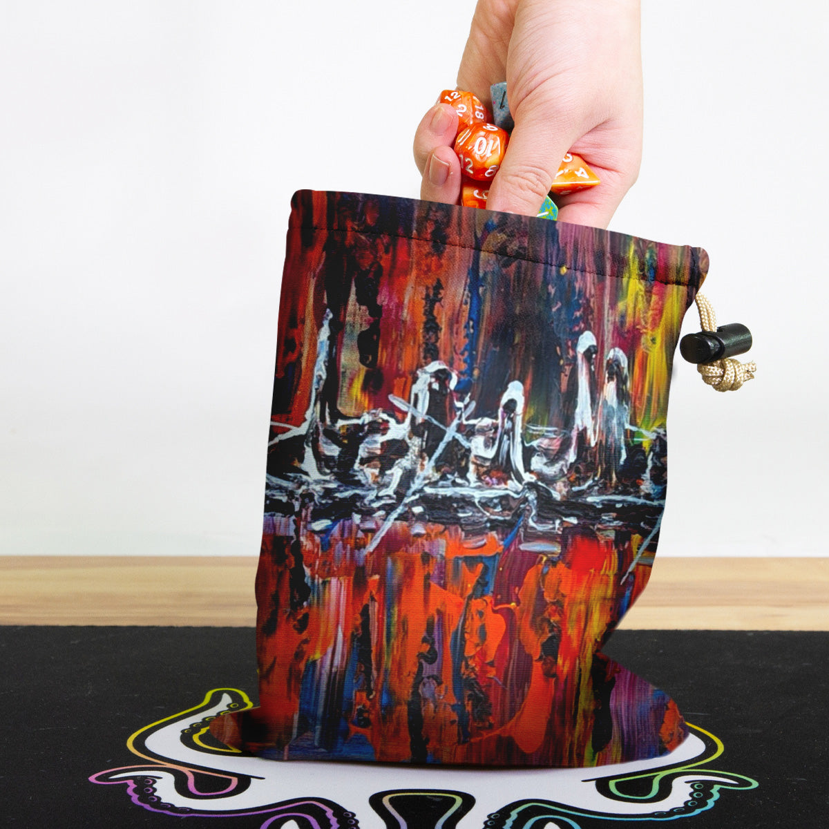 Anne-KristelAlways gaming on the go? Carry everything you need and more using our specially crafted dice bag. But this bag is designed to hold more than just dice. We make it so you can carry other essential accessories and gear with your dice, including deck boxes, life counters, extra sleeves, and pens. Quality is just as important as quantity, which is why our dice bags are crafted using premium material as well. Featuring a soft inner lining and microfiber on the inside and vibrant pre-designed artwork on the outside, our dice bag has an amazing look and feel to it!