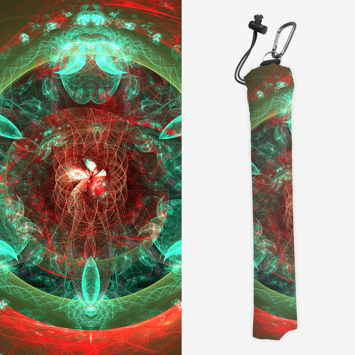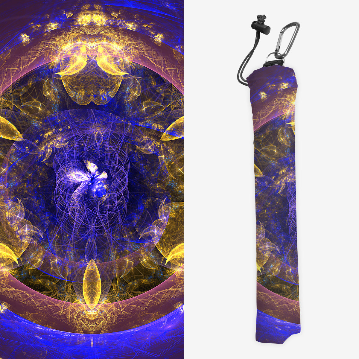 Playmat Bags are specifically designed to hold your mats in style. They are large enough to carry up to two mats. They are coated to be water resistant and include a strap with carabiner for carrying on your backpack. Our bags are hand made in house, and to order. A design that is vertical or patterned would be best for this type of product.