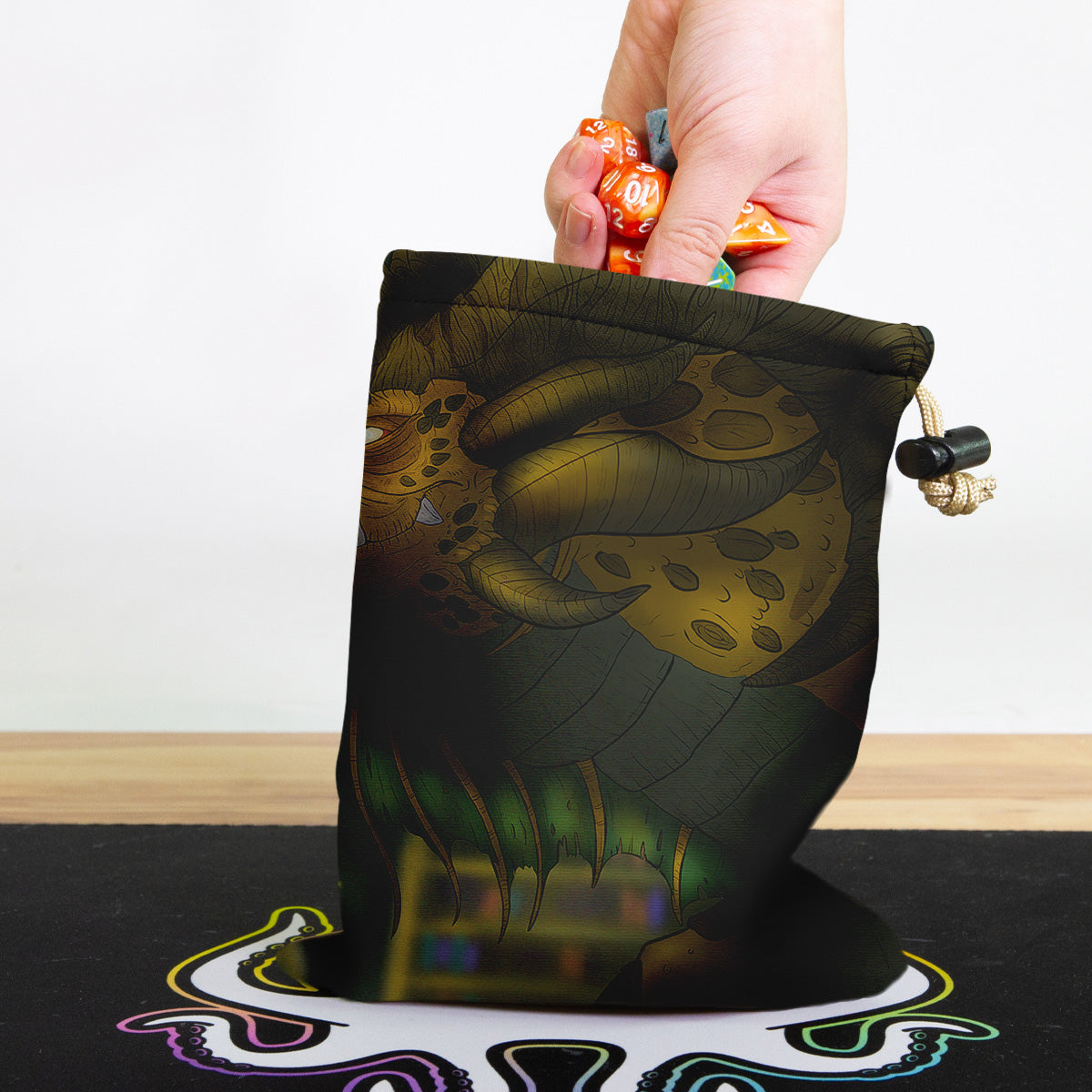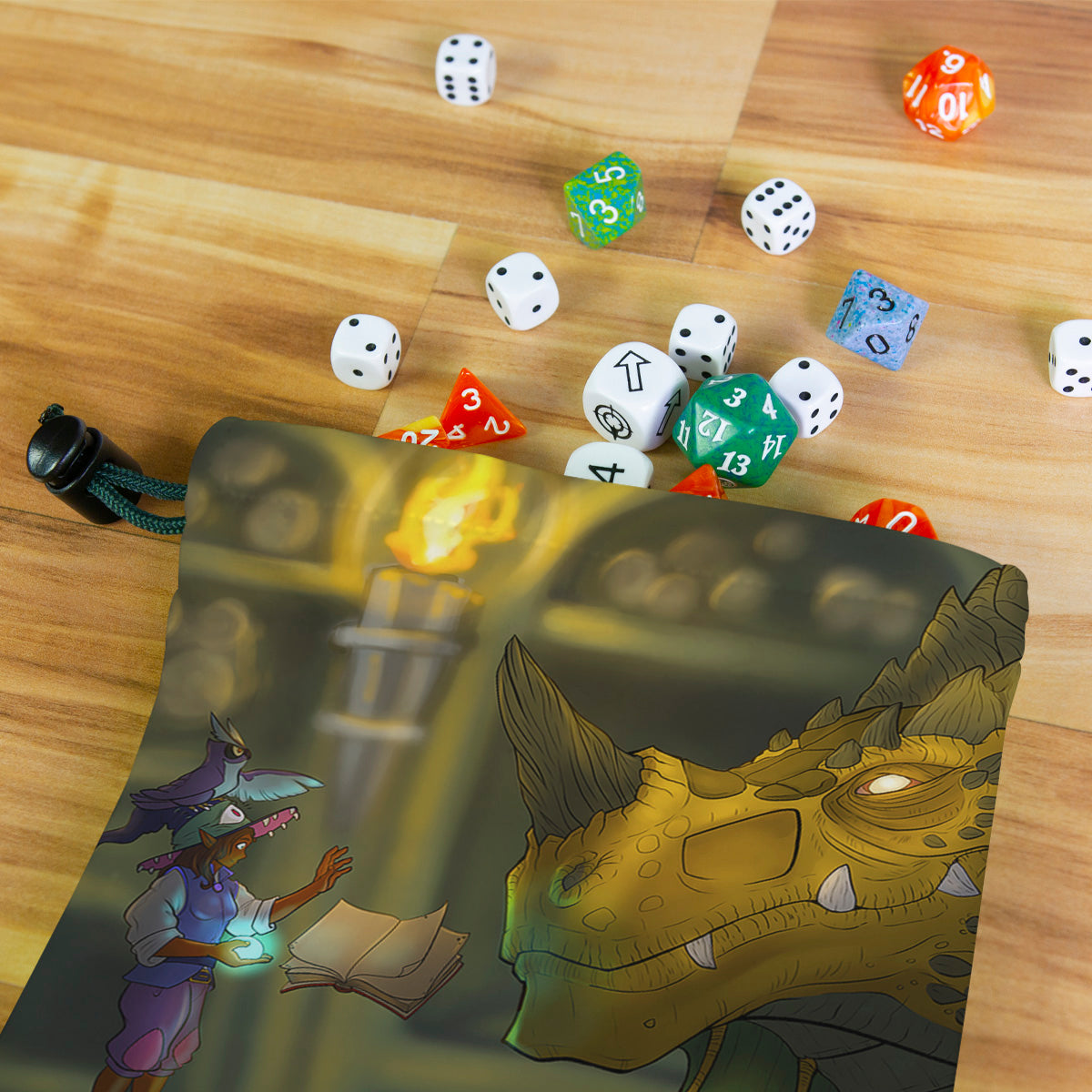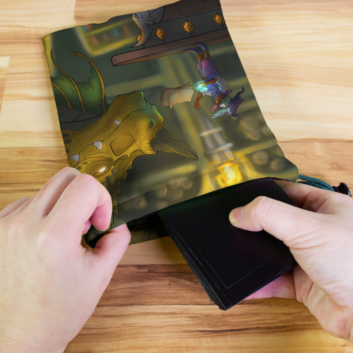 Always gaming on the go? Carry everything you need and more using our specially crafted dice bag. But this bag is designed to hold more than just dice. We make it so you can carry other essential accessories and gear with your dice, including deck boxes, life counters, extra sleeves, and pens. Quality is just as important as quantity, which is why our dice bags are crafted using premium material as well. Featuring a soft inner lining and microfiber on the inside and vibrant pre-designed artwork on the outside, our dice bag has an amazing look and feel to it!