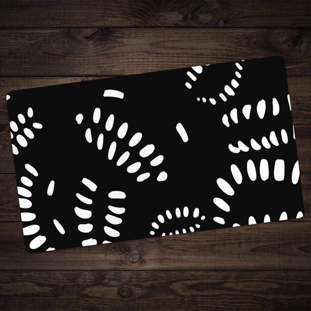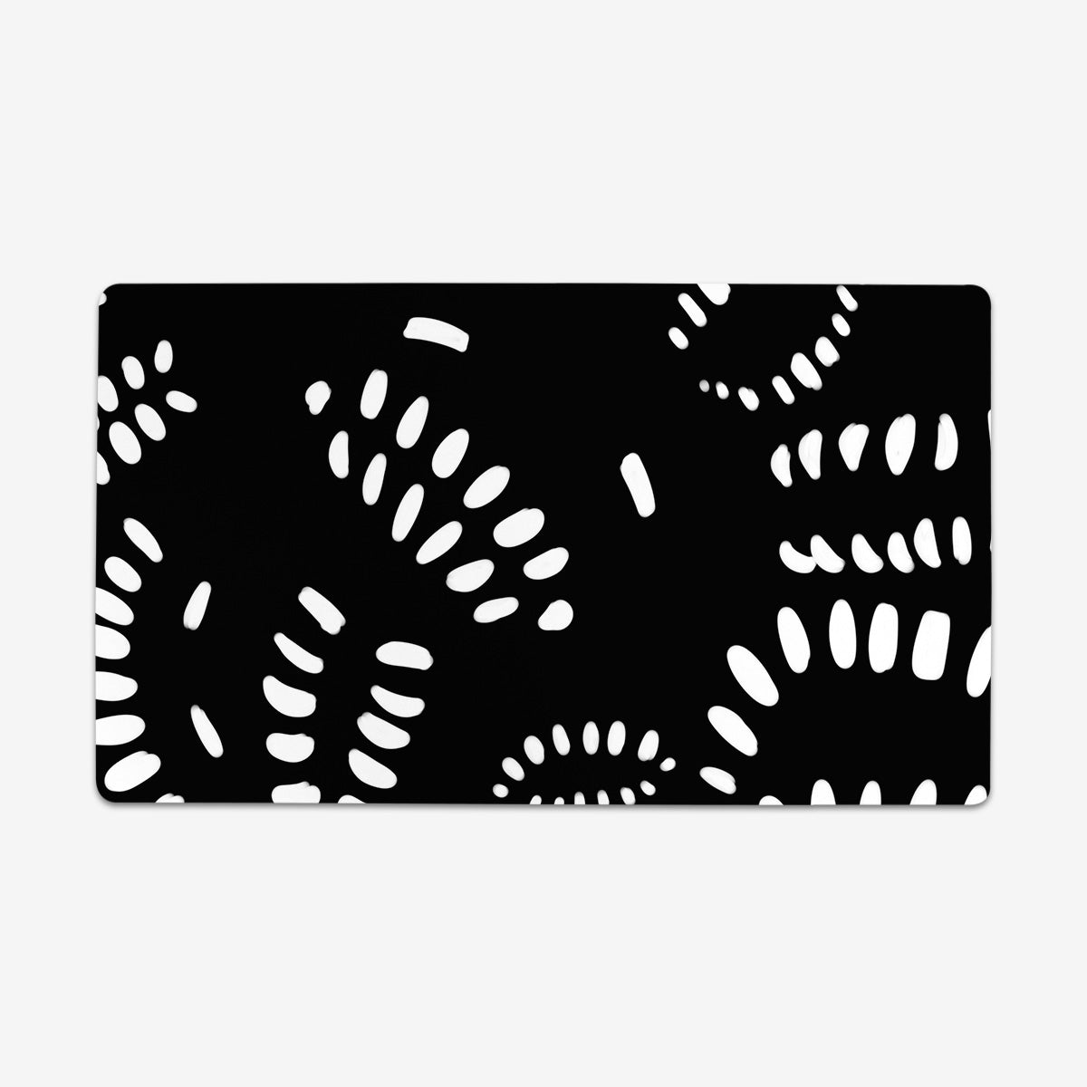 Standard Playmat measures at 24” x 14” inches and is 1/16 of an inch thick. It’s made with a smooth cloth top and strong rubber backing.