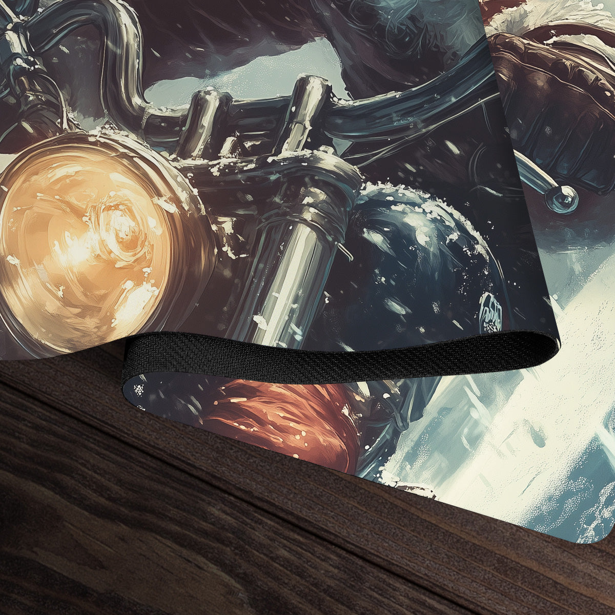 Oversized Playmat measures at 28” x 14” inches and is 1/16 of an inch thick. It’s made with a smooth cloth top and strong rubber backing.