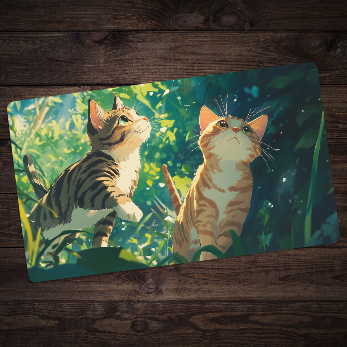 Oversized Playmat measures at 28” x 14” inches and is 1/16 of an inch thick. It’s made with a smooth cloth top and strong rubber backing.