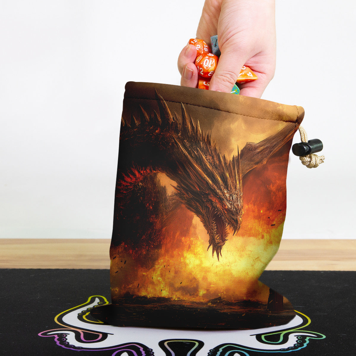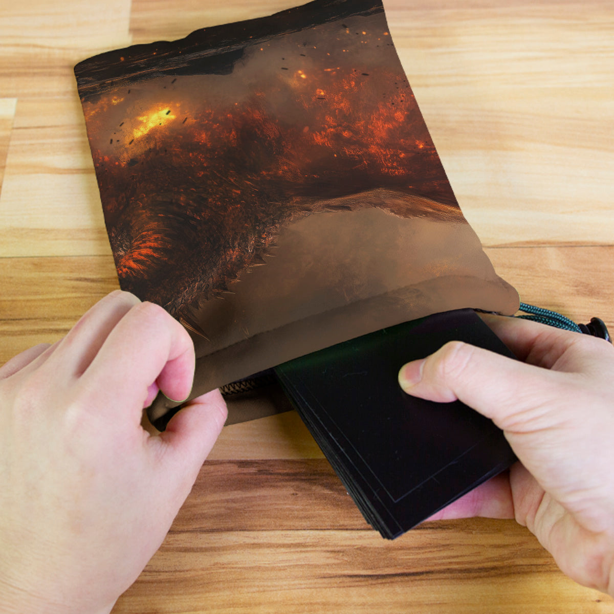 Always gaming on the go? Carry everything you need and more using our specially crafted dice bag. But this bag is designed to hold more than just dice. We make it so you can carry other essential accessories and gear with your dice, including deck boxes, life counters, extra sleeves, and pens. Quality is just as important as quantity, which is why our dice bags are crafted using premium material as well. Featuring a soft inner lining and microfiber on the inside and vibrant pre-designed artwork on the outside, our dice bag has an amazing look and feel to it!
