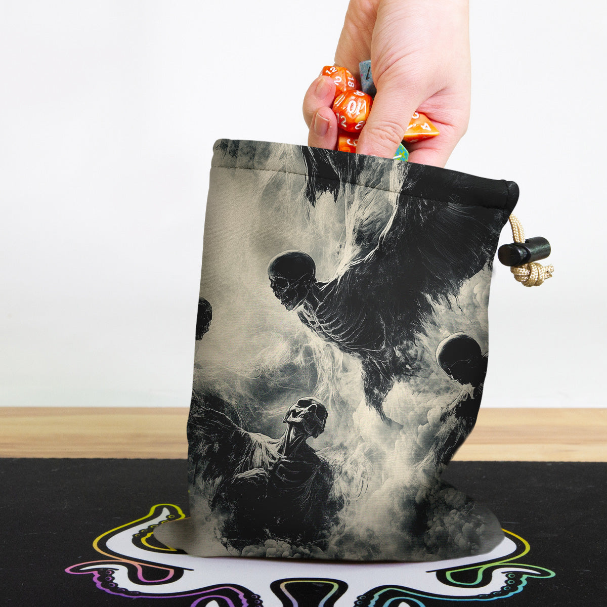 Always gaming on the go? Carry everything you need and more using our specially crafted dice bag. But this bag is designed to hold more than just dice. We make it so you can carry other essential accessories and gear with your dice, including deck boxes, life counters, extra sleeves, and pens. Quality is just as important as quantity, which is why our dice bags are crafted using premium material as well. Featuring a soft inner lining and microfiber on the inside and vibrant pre-designed artwork on the outside, our dice bag has an amazing look and feel to it!
