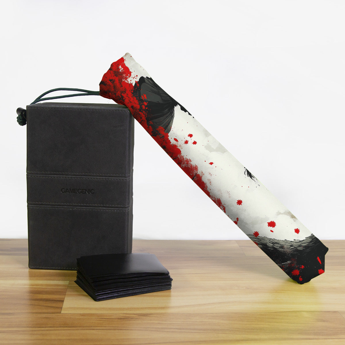 Keep your playmat in pristine condition wherever you go with one of our handcrafted playmat bags. This playmat bag is specifically designed to protect your playmat and can hold two standard sized mats at the same time (in case you need a backup or your friend forgets theirs). Each bag is made in-house and features a water-resistant coating along with a drawstring and carabiner clip for secure carrying. So you can take your game anywhere and in any weather.