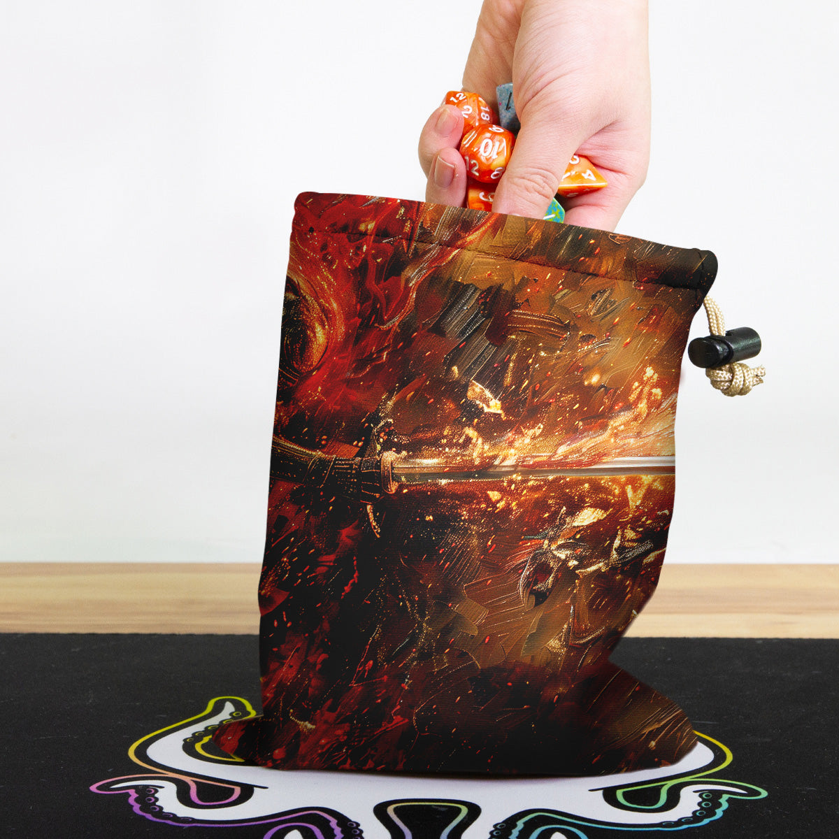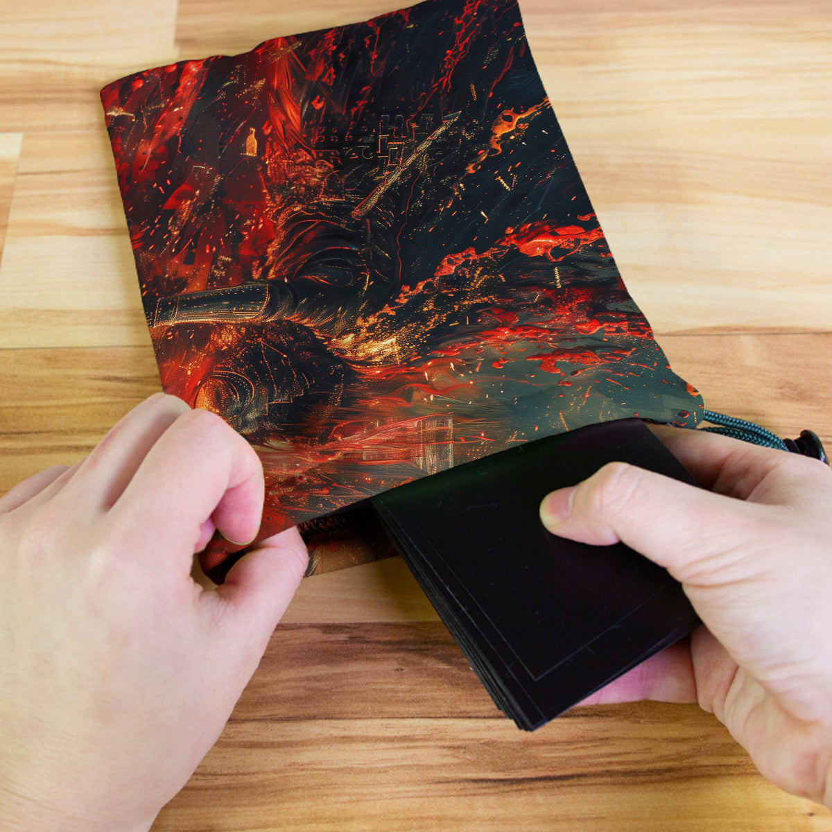 Always gaming on the go? Carry everything you need and more using our specially crafted dice bag. But this bag is designed to hold more than just dice. We make it so you can carry other essential accessories and gear with your dice, including deck boxes, life counters, extra sleeves, and pens. Quality is just as important as quantity, which is why our dice bags are crafted using premium material as well. Featuring a soft inner lining and microfiber on the inside and vibrant pre-designed artwork on the outside, our dice bag has an amazing look and feel to it!
