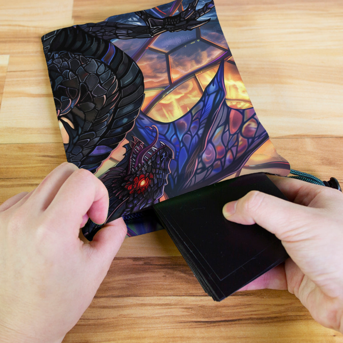 Always gaming on the go? Carry everything you need and more using our specially crafted dice bag. But this bag is designed to hold more than just dice. We make it so you can carry other essential accessories and gear with your dice, including deck boxes, life counters, extra sleeves, and pens. Quality is just as important as quantity, which is why our dice bags are crafted using premium material as well. Featuring a soft inner lining and microfiber on the inside and vibrant pre-designed artwork on the outside, our dice bag has an amazing look and feel to it!