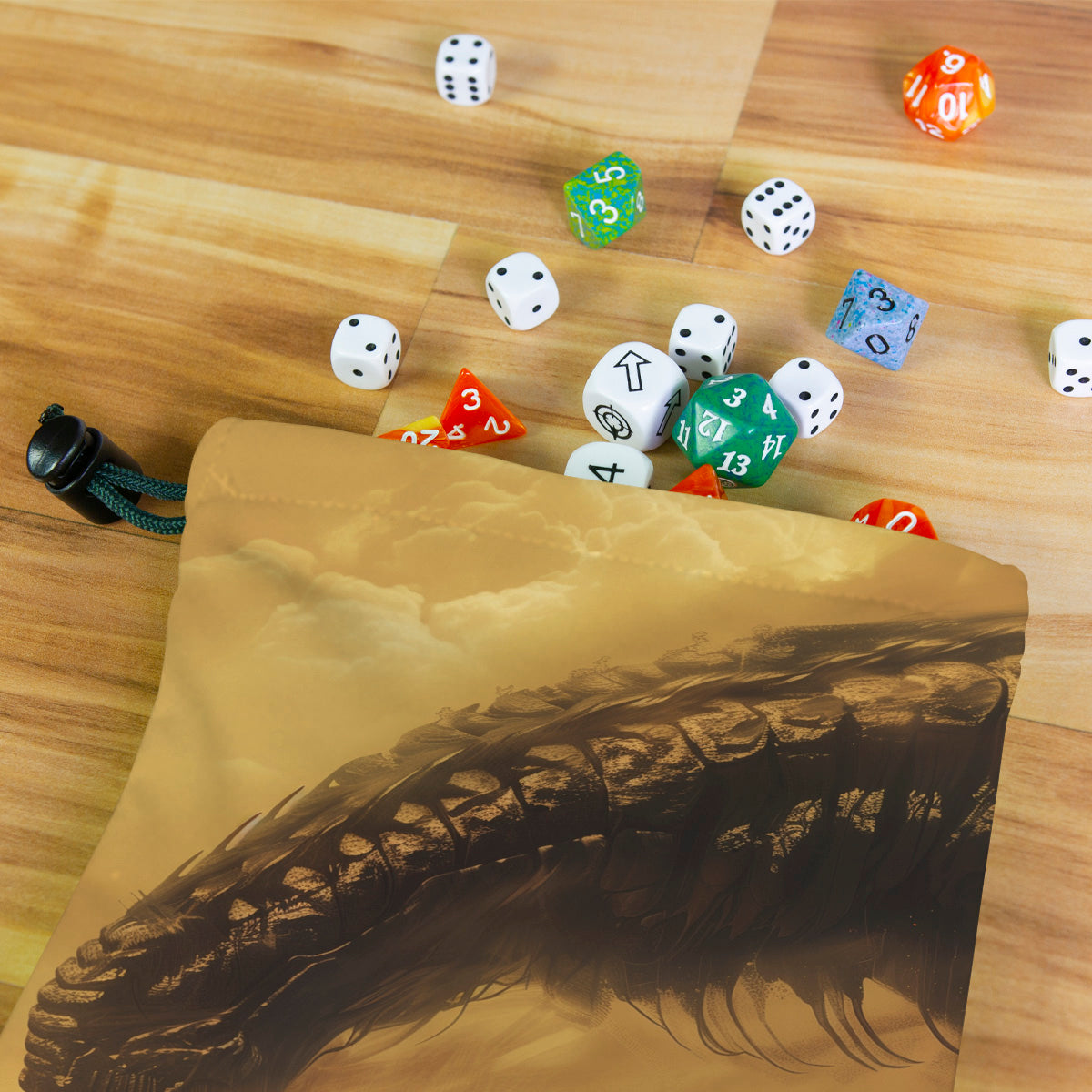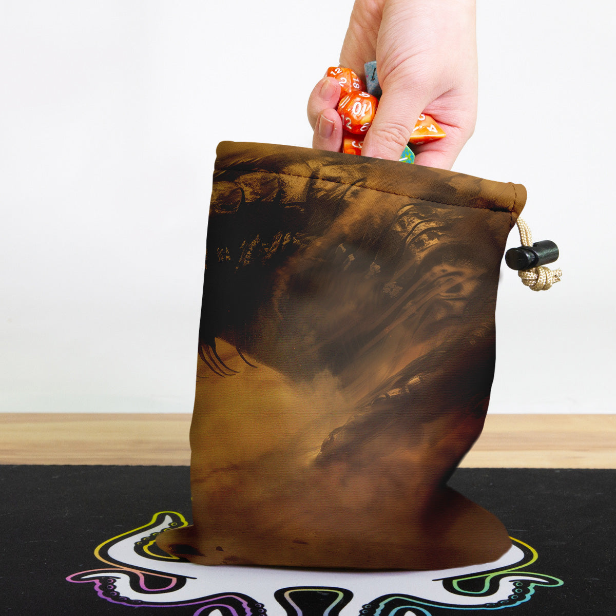 Always gaming on the go? Carry everything you need and more using our specially crafted dice bag. But this bag is designed to hold more than just dice. We make it so you can carry other essential accessories and gear with your dice, including deck boxes, life counters, extra sleeves, and pens. Quality is just as important as quantity, which is why our dice bags are crafted using premium material as well. Featuring a soft inner lining and microfiber on the inside and vibrant pre-designed artwork on the outside, our dice bag has an amazing look and feel to it!