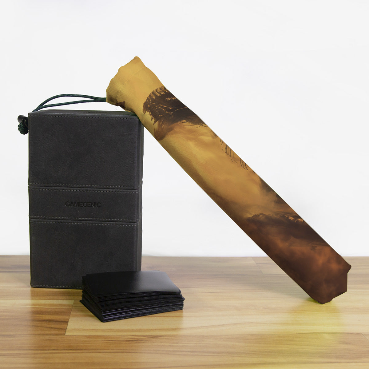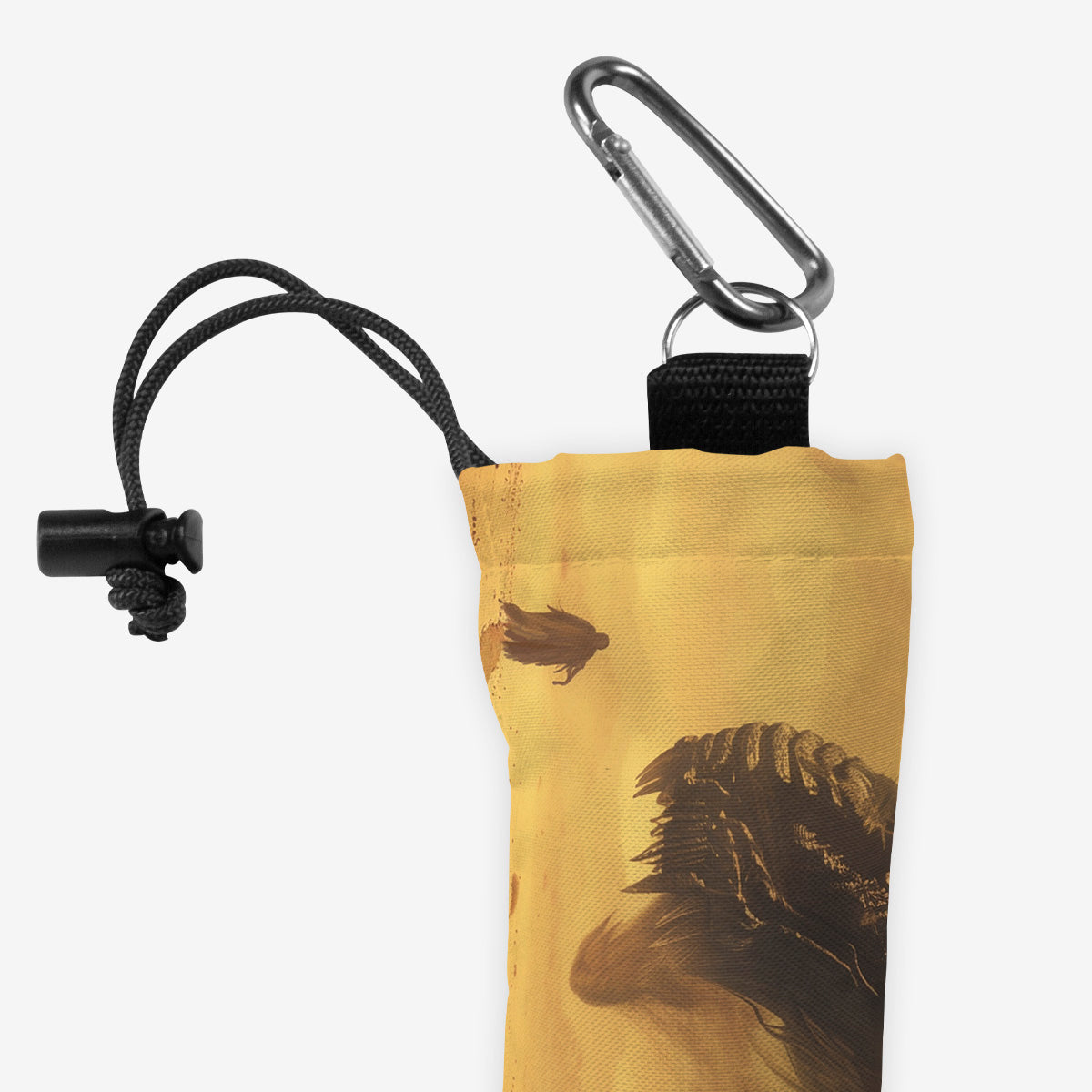 Keep your playmat in pristine condition wherever you go with one of our handcrafted playmat bags. This playmat bag is specifically designed to protect your playmat and can hold two standard sized mats at the same time (in case you need a backup or your friend forgets theirs). Each bag is made in-house and features a water-resistant coating along with a drawstring and carabiner clip for secure carrying. So you can take your game anywhere and in any weather.