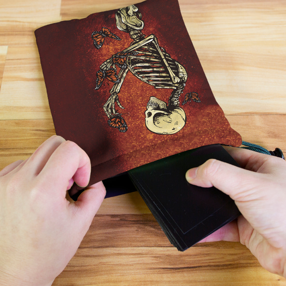 Always gaming on the go? Carry everything you need and more using our specially crafted dice bag. But this bag is designed to hold more than just dice. We make it so you can carry other essential accessories and gear with your dice, including deck boxes, life counters, extra sleeves, and pens. Quality is just as important as quantity, which is why our dice bags are crafted using premium material as well. Featuring a soft inner lining and microfiber on the inside and vibrant pre-designed artwork on the outside, our dice bag has an amazing look and feel to it!