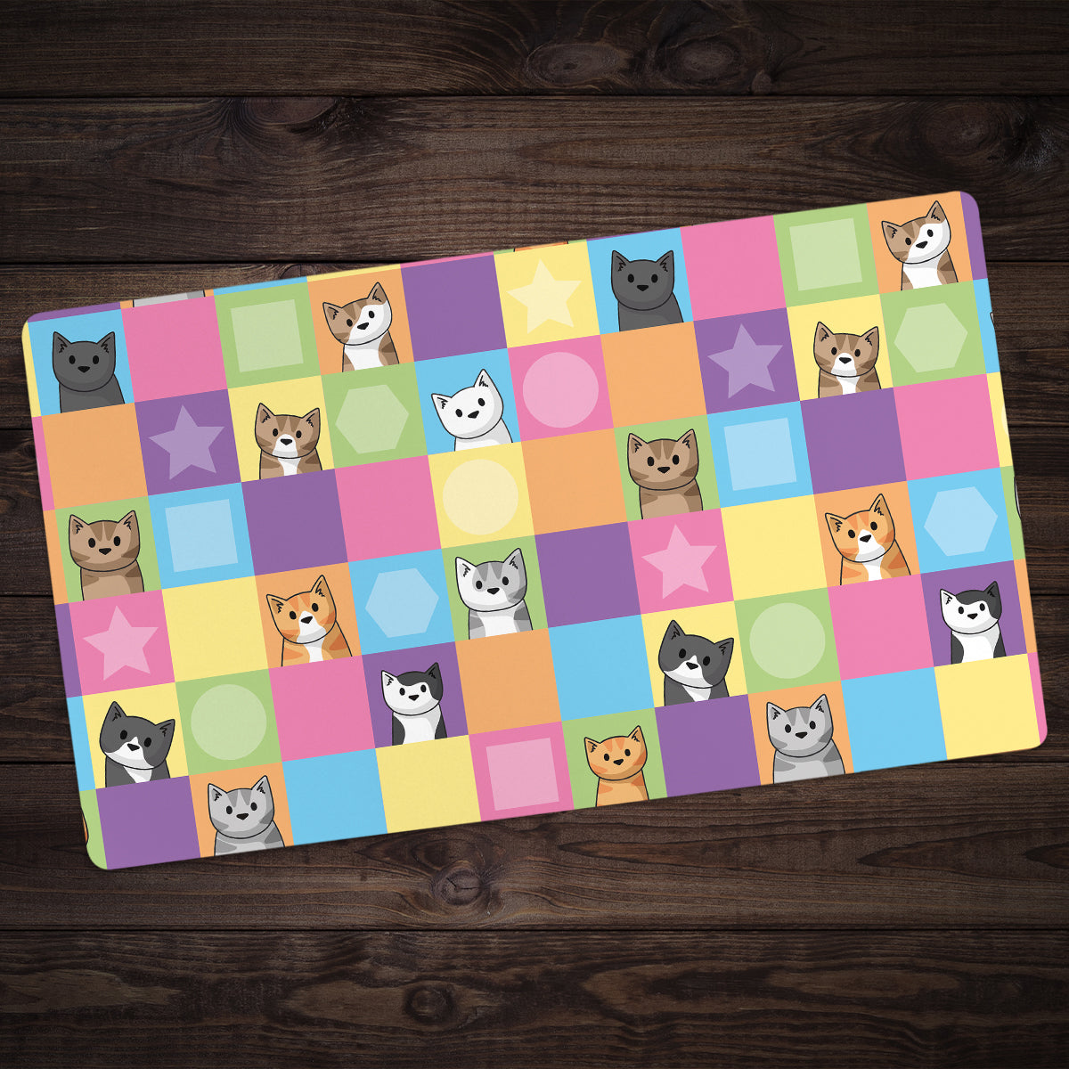 Standard Playmat measures at 24” x 14” inches and is 1/16 of an inch thick. It’s made with a smooth cloth top and strong rubber backing.