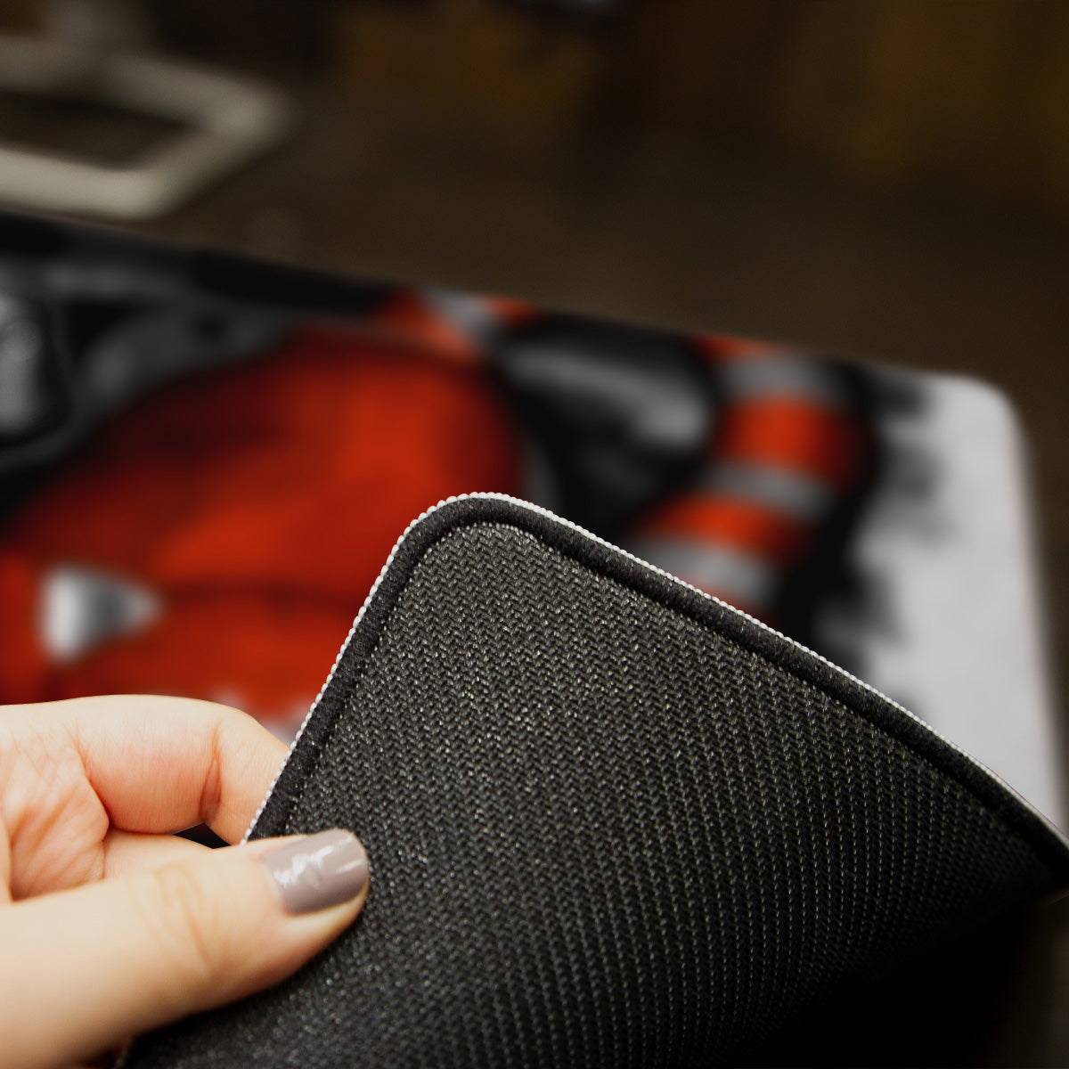 Need a new mousepad that features quality craftsmanship and creativity? Then you’ve definitely come to the right place. Our mousepads are made in-house with premium materials and unique artwork that give your battlestation the supreme look and feel that it deserves. The top is made from sleek polyester, which enables faster, more precise mouse movements. This enhanced speed and precision come in handy whether you’re working or gaming. On the bottom, there’s a strong anti-slip rubber backing that holds a nice, tight grip on your desk while you’re doing your thing. The action and traction this pad provides give you a better overall experience in completing daily tasks, deadlines, and missions of all kinds. And because we’ve added more sizing options to it, you no longer have to worry about running out of room at the worst moments either. The sizes are Classic, Large, and XL. The Classic mousepad has unstitched edges. However, the Large mousepad does include stitched edging, while the XL mousepad has both a stitched or unstitched edging option available. You can see the approximate measurements of all those sizes in the details below. We think you’ll be impressed…if you aren’t already!