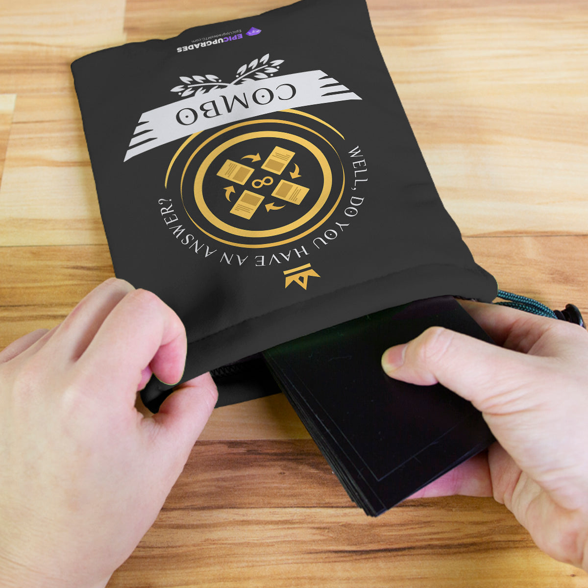 Epic UpgradesAlways gaming on the go? Carry everything you need and more using our specially crafted dice bag. But this bag is designed to hold more than just dice. We make it so you can carry other essential accessories and gear with your dice, including deck boxes, life counters, extra sleeves, and pens. Quality is just as important as quantity, which is why our dice bags are crafted using premium material as well. Featuring a soft inner lining and microfiber on the inside and vibrant pre-designed artwork on the outside, our dice bag has an amazing look and feel to it!