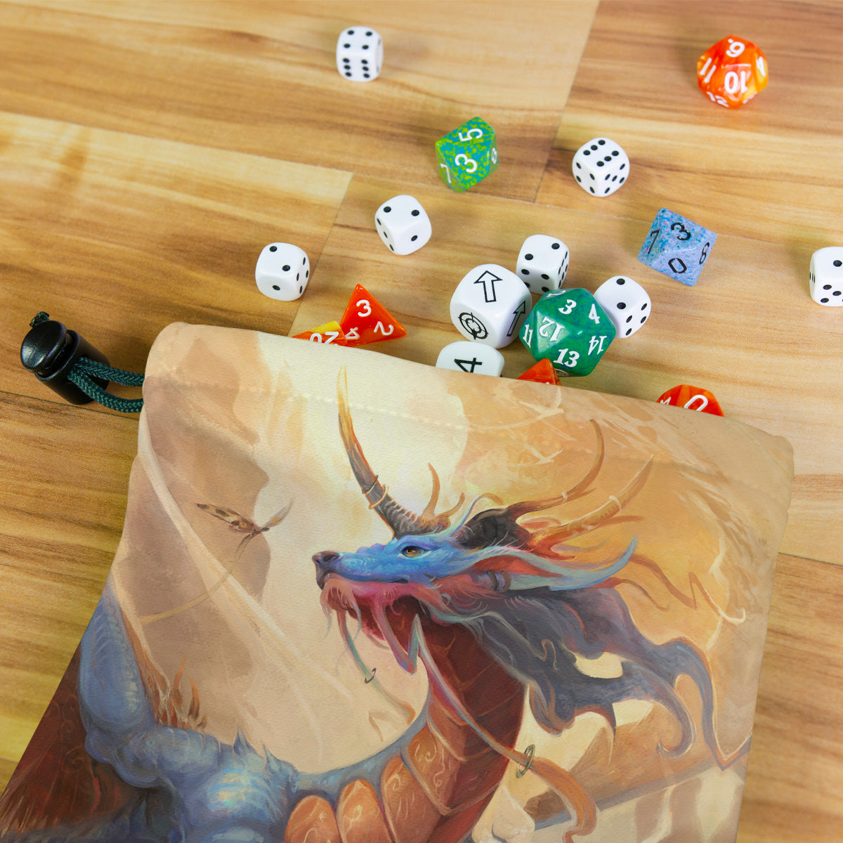 Kate BeckerAlways gaming on the go? Carry everything you need and more using our specially crafted dice bag. But this bag is designed to hold more than just dice. We make it so you can carry other essential accessories and gear with your dice, including deck boxes, life counters, extra sleeves, and pens. Quality is just as important as quantity, which is why our dice bags are crafted using premium material as well. Featuring a soft inner lining and microfiber on the inside and vibrant pre-designed artwork on the outside, our dice bag has an amazing look and feel to it!