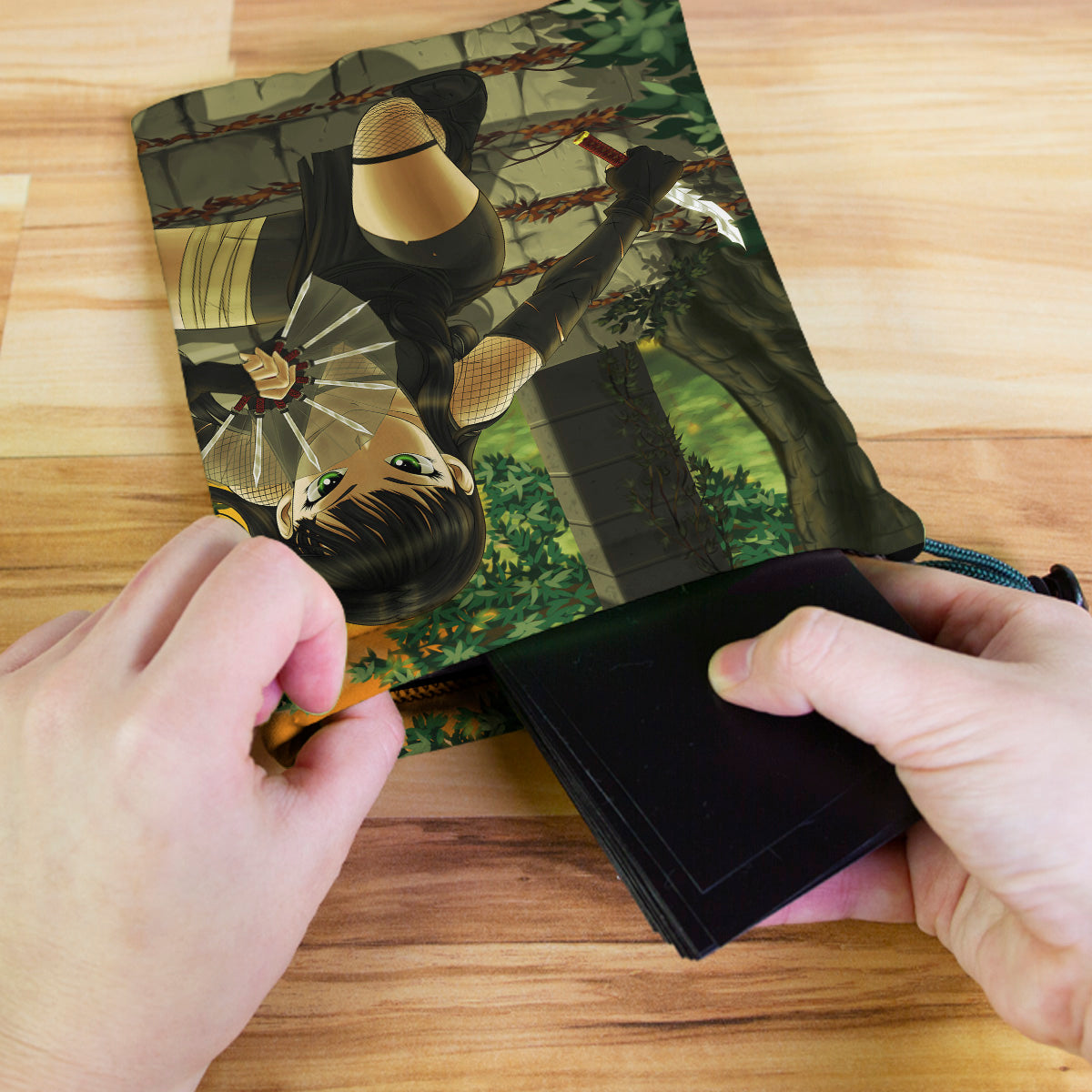 Always gaming on the go? Carry everything you need and more using our specially crafted dice bag. But this bag is designed to hold more than just dice. We make it so you can carry other essential accessories and gear with your dice, including deck boxes, life counters, extra sleeves, and pens. Quality is just as important as quantity, which is why our dice bags are crafted using premium material as well. Featuring a soft inner lining and microfiber on the inside and vibrant pre-designed artwork on the outside, our dice bag has an amazing look and feel to it!