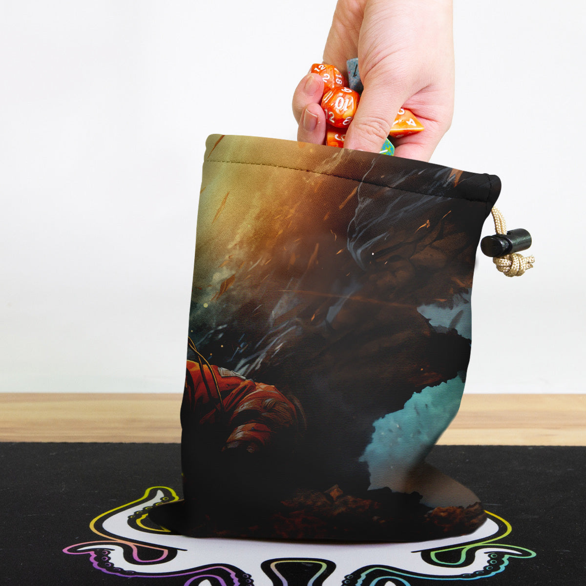 KnerdedAlways gaming on the go? Carry everything you need and more using our specially crafted dice bag. But this bag is designed to hold more than just dice. We make it so you can carry other essential accessories and gear with your dice, including deck boxes, life counters, extra sleeves, and pens. Quality is just as important as quantity, which is why our dice bags are crafted using premium material as well. Featuring a soft inner lining and microfiber on the inside and vibrant pre-designed artwork on the outside, our dice bag has an amazing look and feel to it!