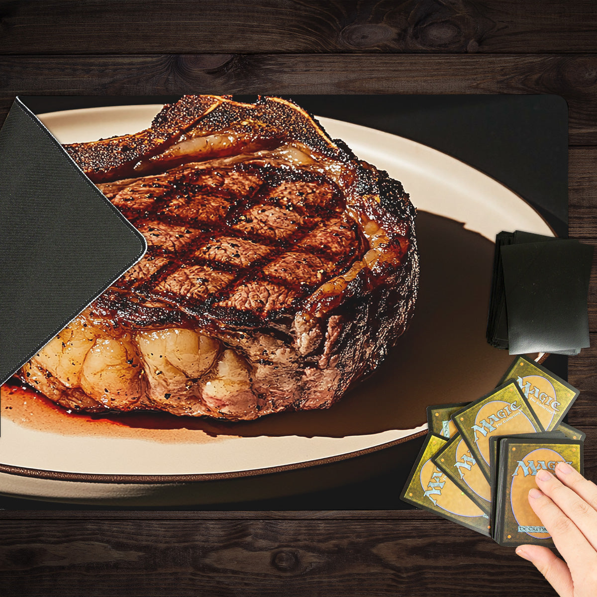 Oversized Playmat measures at 28” x 14” inches and is 1/16 of an inch thick. It’s made with a smooth cloth top and strong rubber backing.