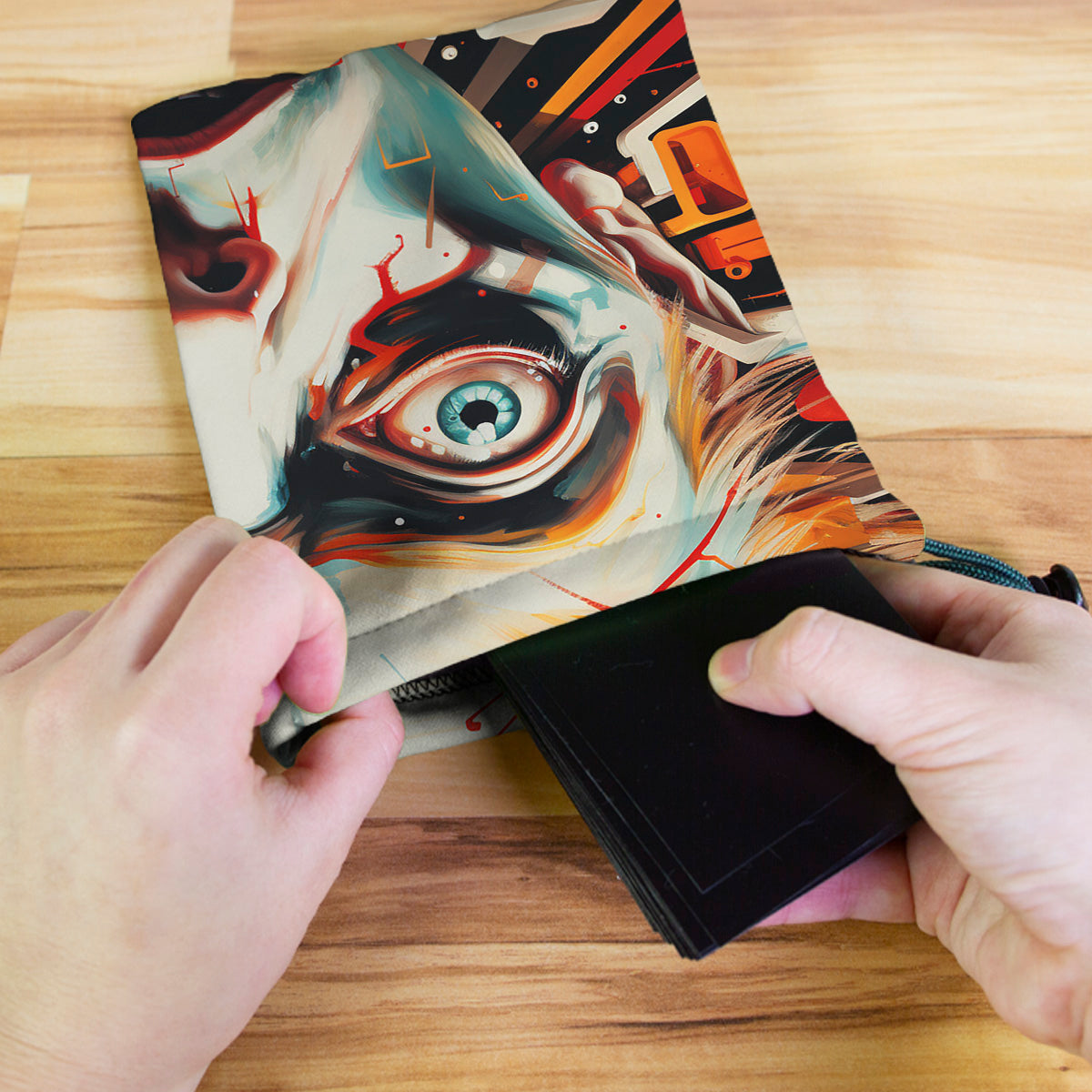 KnerdedAlways gaming on the go? Carry everything you need and more using our specially crafted dice bag. But this bag is designed to hold more than just dice. We make it so you can carry other essential accessories and gear with your dice, including deck boxes, life counters, extra sleeves, and pens. Quality is just as important as quantity, which is why our dice bags are crafted using premium material as well. Featuring a soft inner lining and microfiber on the inside and vibrant pre-designed artwork on the outside, our dice bag has an amazing look and feel to it!