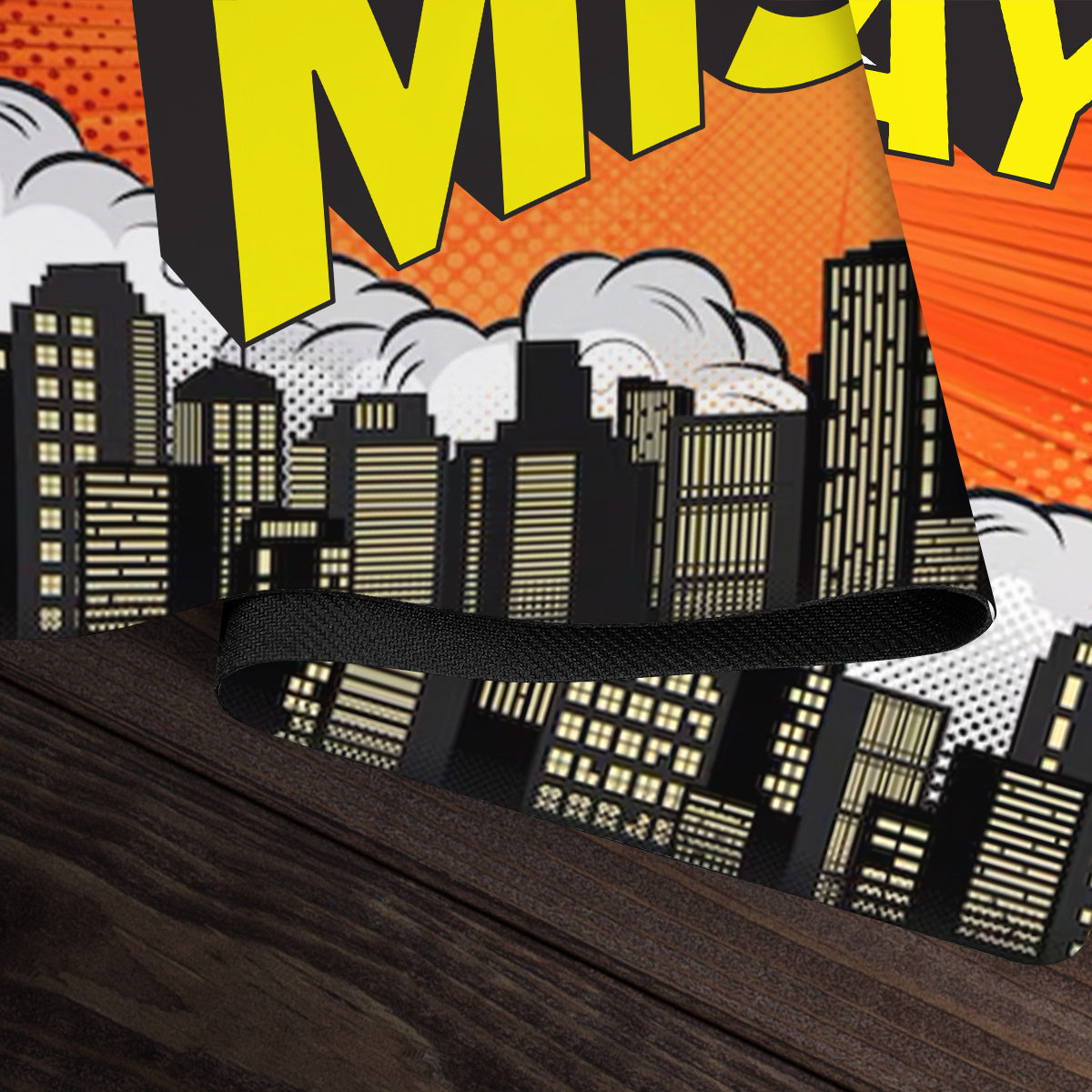 Standard Playmat measures at 24” x 14” inches and is 1/16 of an inch thick. It’s made with a smooth cloth top and strong rubber backing.