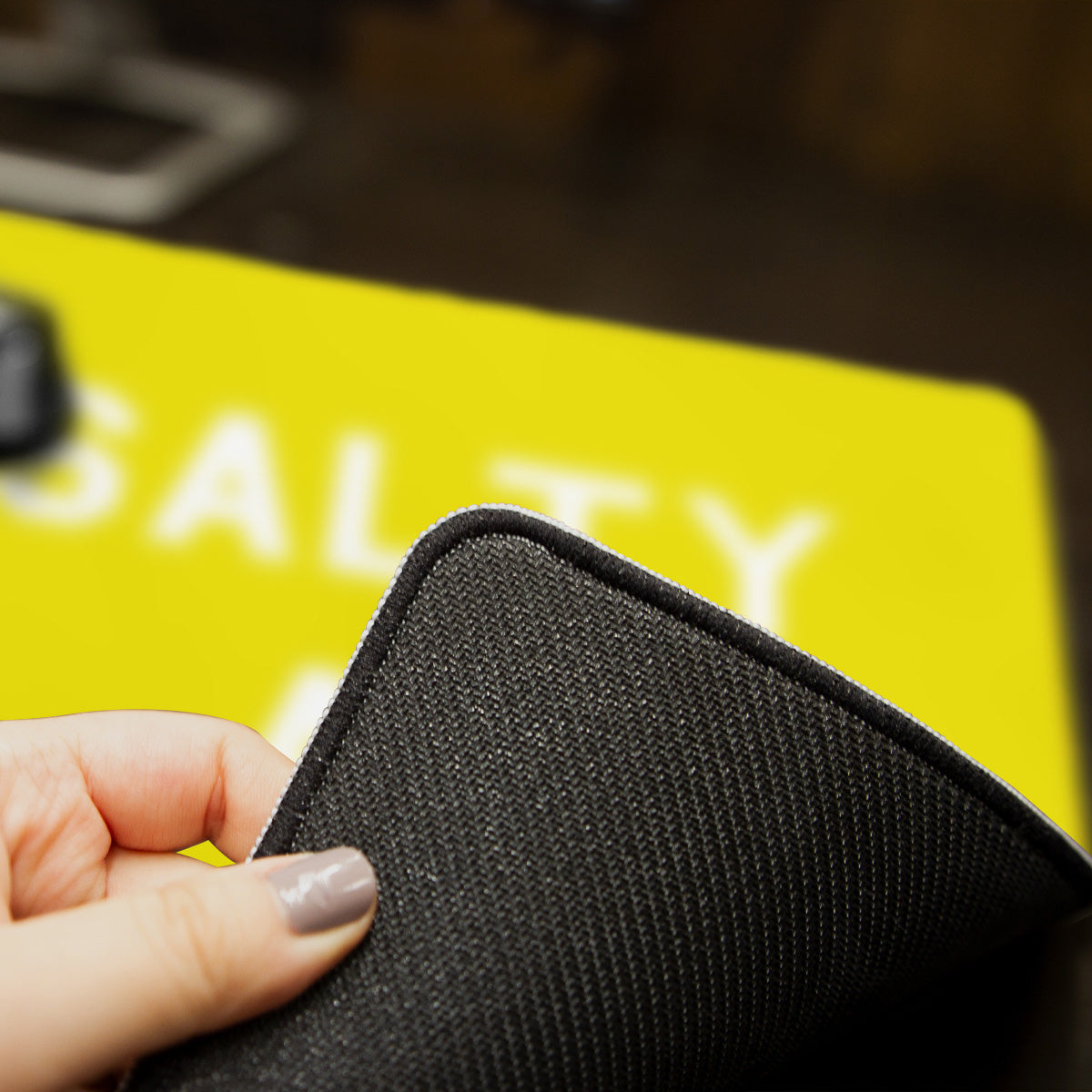 Need a new mousepad that features quality craftsmanship and creativity? Then you’ve definitely come to the right place. Our mousepads are made in-house with premium materials and unique artwork that give your battlestation the supreme look and feel that it deserves. The top is made from sleek polyester, which enables faster, more precise mouse movements. This enhanced speed and precision come in handy whether you’re working or gaming. On the bottom, there’s a strong anti-slip rubber backing that holds a nice, tight grip on your desk while you’re doing your thing. The action and traction this pad provides give you a better overall experience in completing daily tasks, deadlines, and missions of all kinds. And because we’ve added more sizing options to it, you no longer have to worry about running out of room at the worst moments either. The sizes are Classic, Large, and XL. The Classic mousepad has unstitched edges. However, the Large mousepad does include stitched edging, while the XL mousepad has both a stitched or unstitched edging option available. You can see the approximate measurements of all those sizes in the details below. We think you’ll be impressed…if you aren’t already!