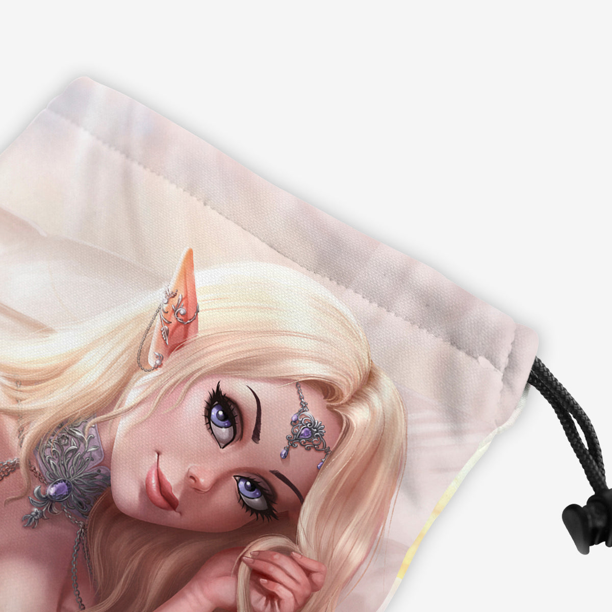 A dice bag that’s simply to die for! That’s what we call Michael Dashow’s Aelyth dice bag design! Our dice bags are specifically crafted in-house and feature a soft microfiber coupled with a smooth inner lining that looks great and keeps your goods lookin’ like new. Additionally, it’s roomy, sturdy design allows you to carry more than just dice. This handy little bag can even be used for carrying and storing sleeves, deck boxes, extra tokens, life counters, pens and whatever else you can fit into it!