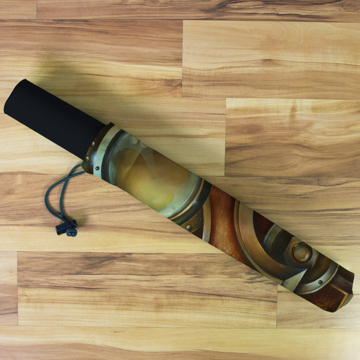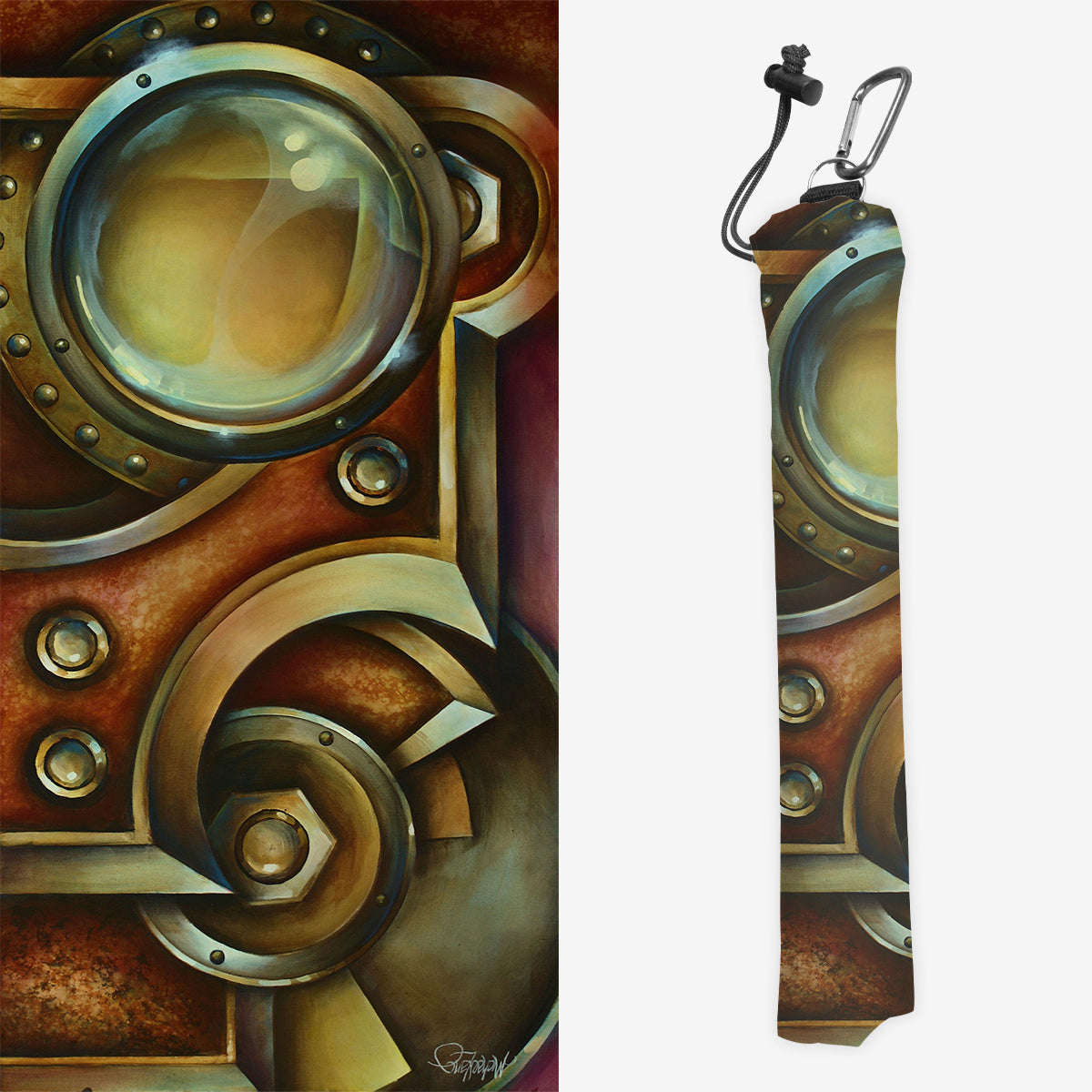 Playmat Bags are specifically designed to hold your mats in style. They are large enough to carry up to two mats. They are coated to be water resistant and include a strap with carabiner for carrying on your backpack. Our bags are hand made in house, and to order. A design that is vertical or patterned would be best for this type of product.