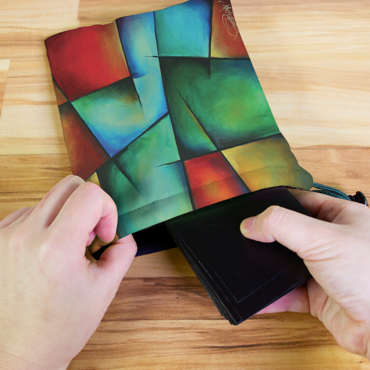 Always gaming on the go? Carry everything you need and more using our specially crafted dice bag. But this bag is designed to hold more than just dice. We make it so you can carry other essential accessories and gear with your dice, including deck boxes, life counters, extra sleeves, and pens. Quality is just as important as quantity, which is why our dice bags are crafted using premium material as well. Featuring a soft inner lining and microfiber on the inside and vibrant pre-designed artwork on the outside, our dice bag has an amazing look and feel to it!