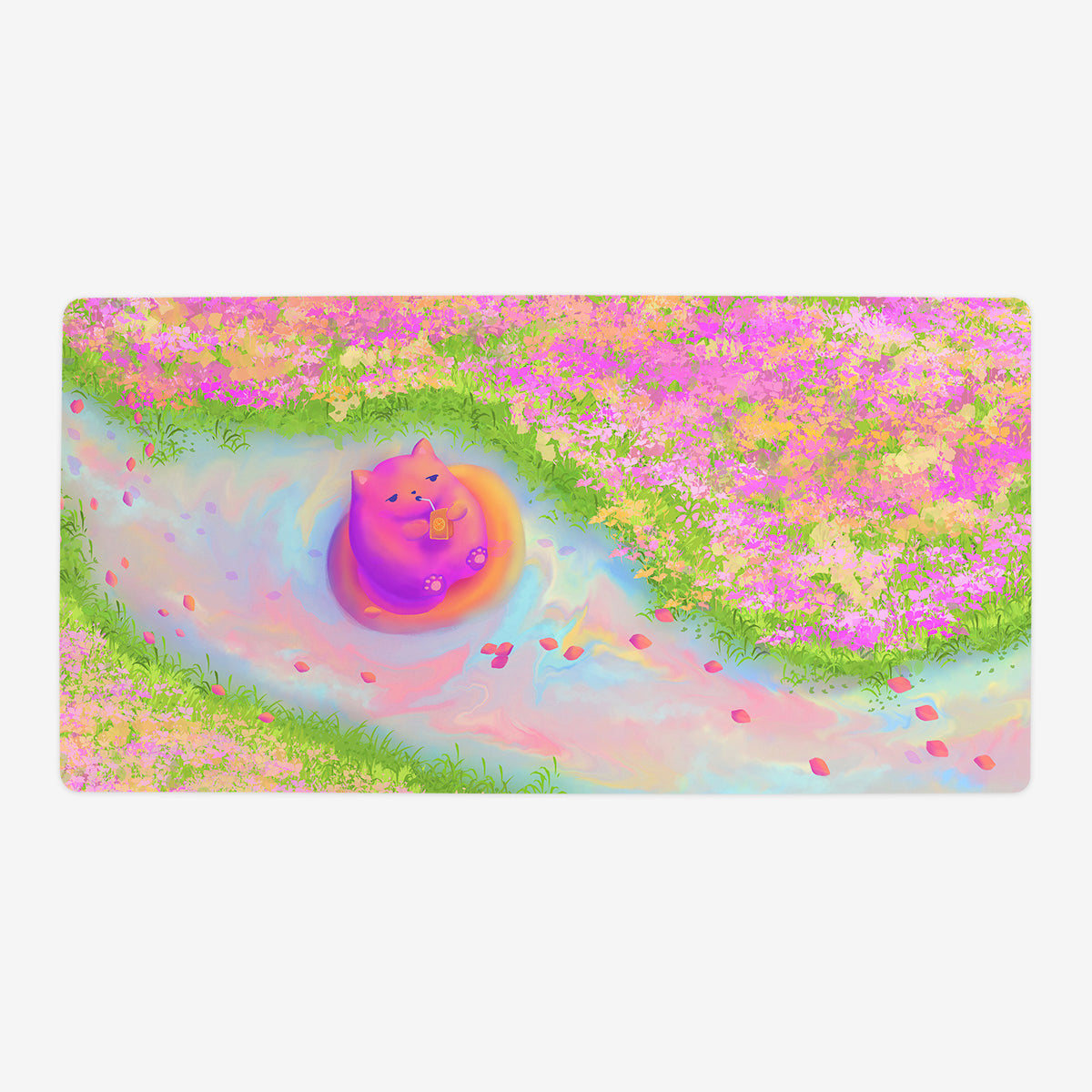 Oversized Playmat measures at 28” x 14” inches and is 1/16 of an inch thick. It’s made with a smooth cloth top and strong rubber backing.