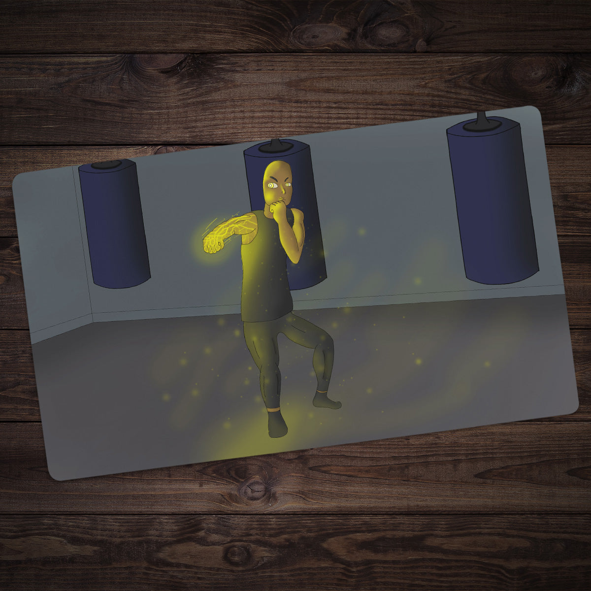 Standard Playmat measures at 24” x 14” inches and is 1/16 of an inch thick. It’s made with a smooth cloth top and strong rubber backing.