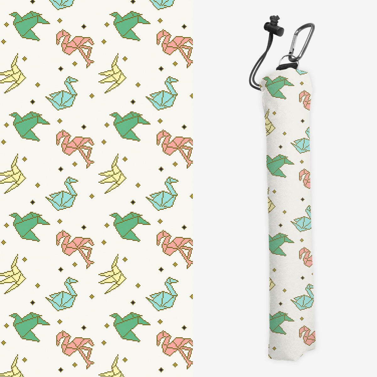 Playmat Bags are specifically designed to hold your mats in style. They are large enough to carry up to two mats. They are coated to be water resistant and include a strap with carabiner for carrying on your backpack. Our bags are hand made in house, and to order. A design that is vertical or patterned would be best for this type of product.