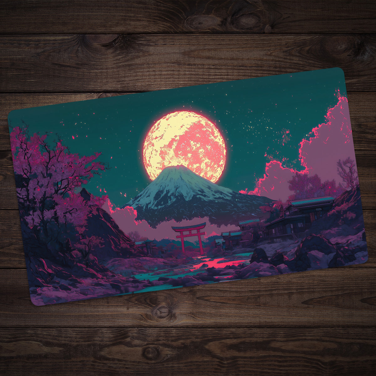 Standard Playmat measures at 24” x 14” inches and is 1/16 of an inch thick. It’s made with a smooth cloth top and strong rubber backing.