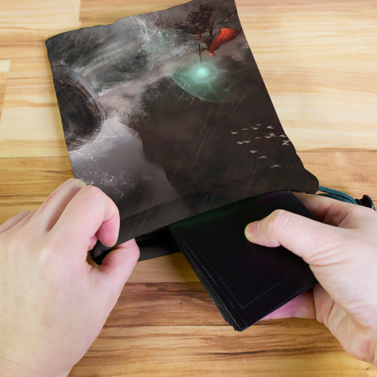 Always gaming on the go? Carry everything you need and more using our specially crafted dice bag. But this bag is designed to hold more than just dice. We make it so you can carry other essential accessories and gear with your dice, including deck boxes, life counters, extra sleeves, and pens. Quality is just as important as quantity, which is why our dice bags are crafted using premium material as well. Featuring a soft inner lining and microfiber on the inside and vibrant pre-designed artwork on the outside, our dice bag has an amazing look and feel to it!
