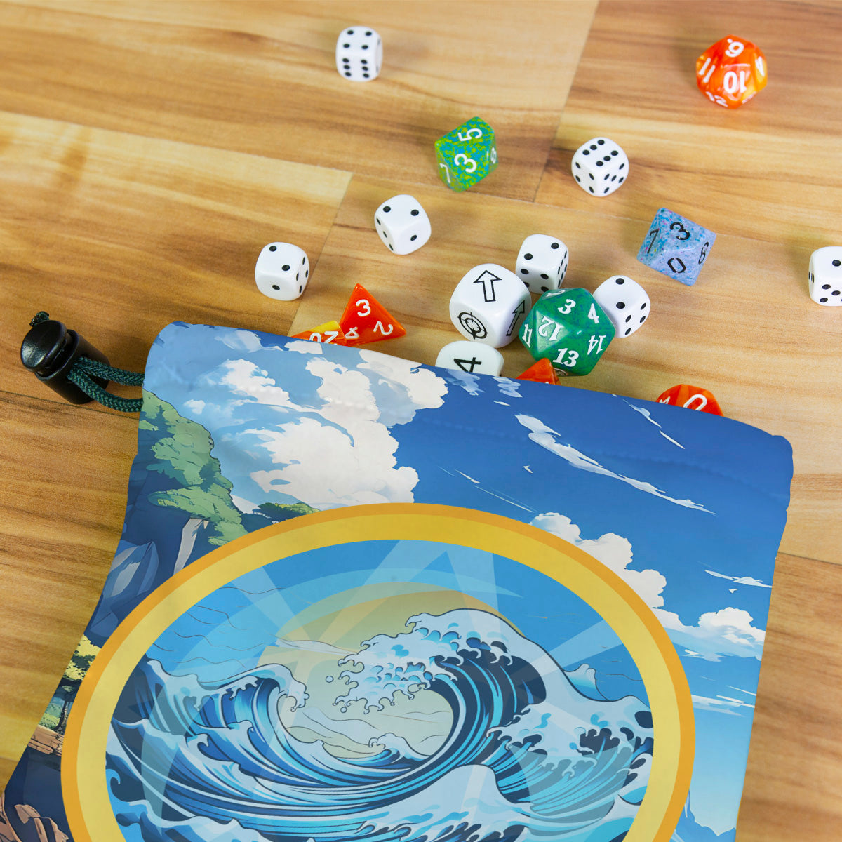 Always gaming on the go? Carry everything you need and more using our specially crafted dice bag. But this bag is designed to hold more than just dice. We make it so you can carry other essential accessories and gear with your dice, including deck boxes, life counters, extra sleeves, and pens. Quality is just as important as quantity, which is why our dice bags are crafted using premium material as well. Featuring a soft inner lining and microfiber on the inside and vibrant pre-designed artwork on the outside, our dice bag has an amazing look and feel to it!