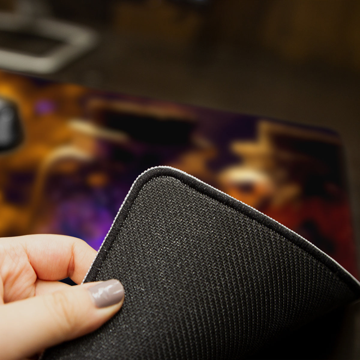 Need a new mousepad that features quality craftsmanship and creativity? Then you’ve definitely come to the right place. Our mousepads are made in-house with premium materials and unique artwork that give your battlestation the supreme look and feel that it deserves. The top is made from sleek polyester, which enables faster, more precise mouse movements. This enhanced speed and precision come in handy whether you’re working or gaming. On the bottom, there’s a strong anti-slip rubber backing that holds a nice, tight grip on your desk while you’re doing your thing. The action and traction this pad provides give you a better overall experience in completing daily tasks, deadlines, and missions of all kinds. And because we’ve added more sizing options to it, you no longer have to worry about running out of room at the worst moments either. The sizes are Classic, Large, and XL. The Classic mousepad has unstitched edges. However, the Large mousepad does include stitched edging, while the XL mousepad has both a stitched or unstitched edging option available. You can see the approximate measurements of all those sizes in the details below. We think you’ll be impressed…if you aren’t already!
