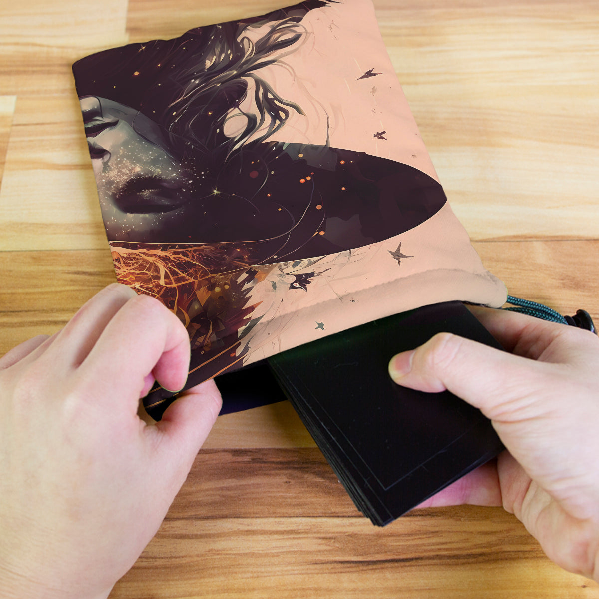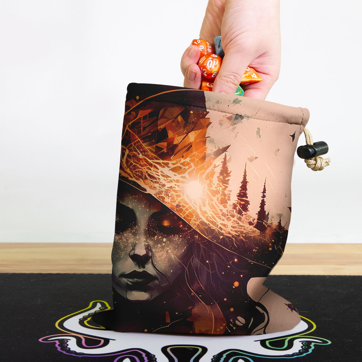 Always gaming on the go? Carry everything you need and more using our specially crafted dice bag. But this bag is designed to hold more than just dice. We make it so you can carry other essential accessories and gear with your dice, including deck boxes, life counters, extra sleeves, and pens. Quality is just as important as quantity, which is why our dice bags are crafted using premium material as well. Featuring a soft inner lining and microfiber on the inside and vibrant pre-designed artwork on the outside, our dice bag has an amazing look and feel to it!