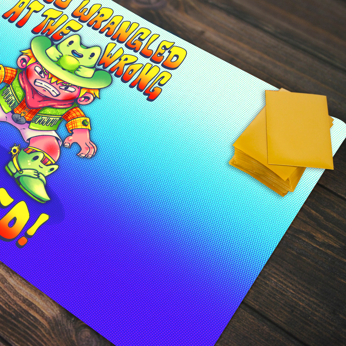 All Inked playmats are specially designed for you to play your favorite card games with style and finesse. Made with a smooth cloth top and rubber bottom, our mats allow you to pick up and move your cards with ease. That means no more sliding cards off the edges of tables or struggling to flip cards over at the most pivotal moment of battle. And with different sizing options available - Standard and Oversized - our playmats are made to fit every style of play. So, if you’re the type of player who requires a little extra elbow room, there’s a mat for that! No matter the size, these mats are ideal for keeping your precious cards and sleeves in good condition as well. When it comes to crafting the perfect playmat, quality and care is the name of the game. With a playmat like this, you’ll be hard-pressed to find anything else that comes close!