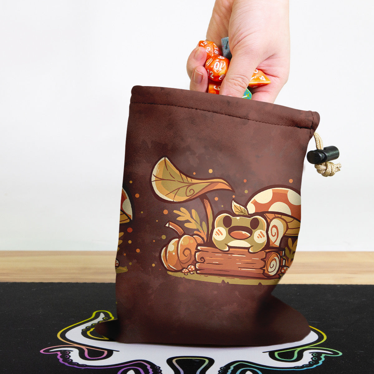 Always gaming on the go? Carry everything you need and more using our specially crafted dice bag. But this bag is designed to hold more than just dice. We make it so you can carry other essential accessories and gear with your dice, including deck boxes, life counters, extra sleeves, and pens. Quality is just as important as quantity, which is why our dice bags are crafted using premium material as well. Featuring a soft inner lining and microfiber on the inside and vibrant pre-designed artwork on the outside, our dice bag has an amazing look and feel to it!